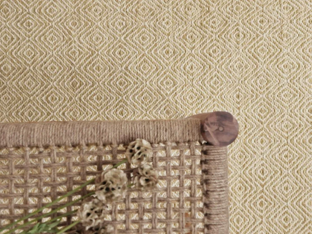 Ulden i tæppet er blød og dejlig at gå på. Det er et slidstærkt materiale, som er naturligt smudsafvisende, holdbart og nemt at holde rent. Der kan forekomme små afvigelser, fordi tæppet er håndvævet. En stilfuld klassiker til at lægge under køkkenbordet eller ved siden af det minimalistiske sengebord.