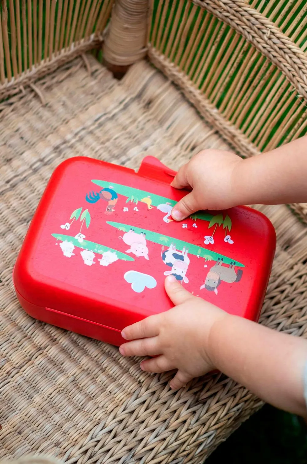 I den rummelige og farverige madkasse Candy bliver brød, snacks, frugt og endda sandwich holdt friske og appetitlige. Lukningen er designet, så madkassen ikke ved et uheld kan åbnes under transport. Den afrundede form føles glat og sikrer, at den ikke sætter sig fast i ting, når du tager æsken ud af din taske eller rygsæk. Materiale: termoplast og træfiber. Tåler opvaskemaskine. 100% genindvundet materiale. Produktlængde cm