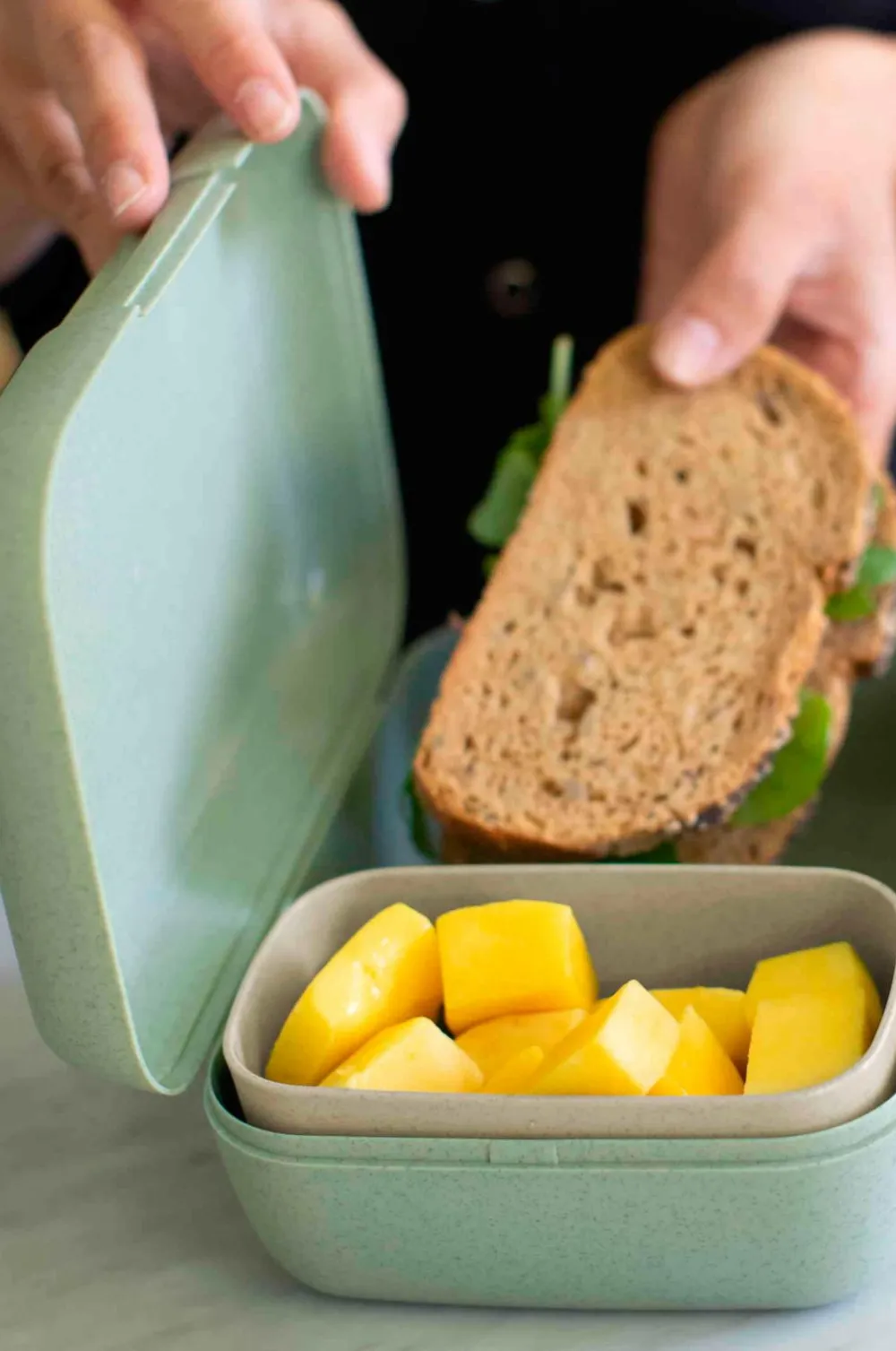 I den rummelige og farverige madkasse Candy bliver brød, snacks, frugt og endda sandwich holdt friske og appetitlige. Lukningen er designet, så madkassen ikke ved et uheld kan åbnes under transport. Den afrundede form føles glat og sikrer, at den ikke sætter sig fast i ting, når du tager æsken ud af din taske eller rygsæk. Materiale: termoplast og træfiber. Tåler opvaskemaskine. 100% genindvundet materiale. Produktlængde cm