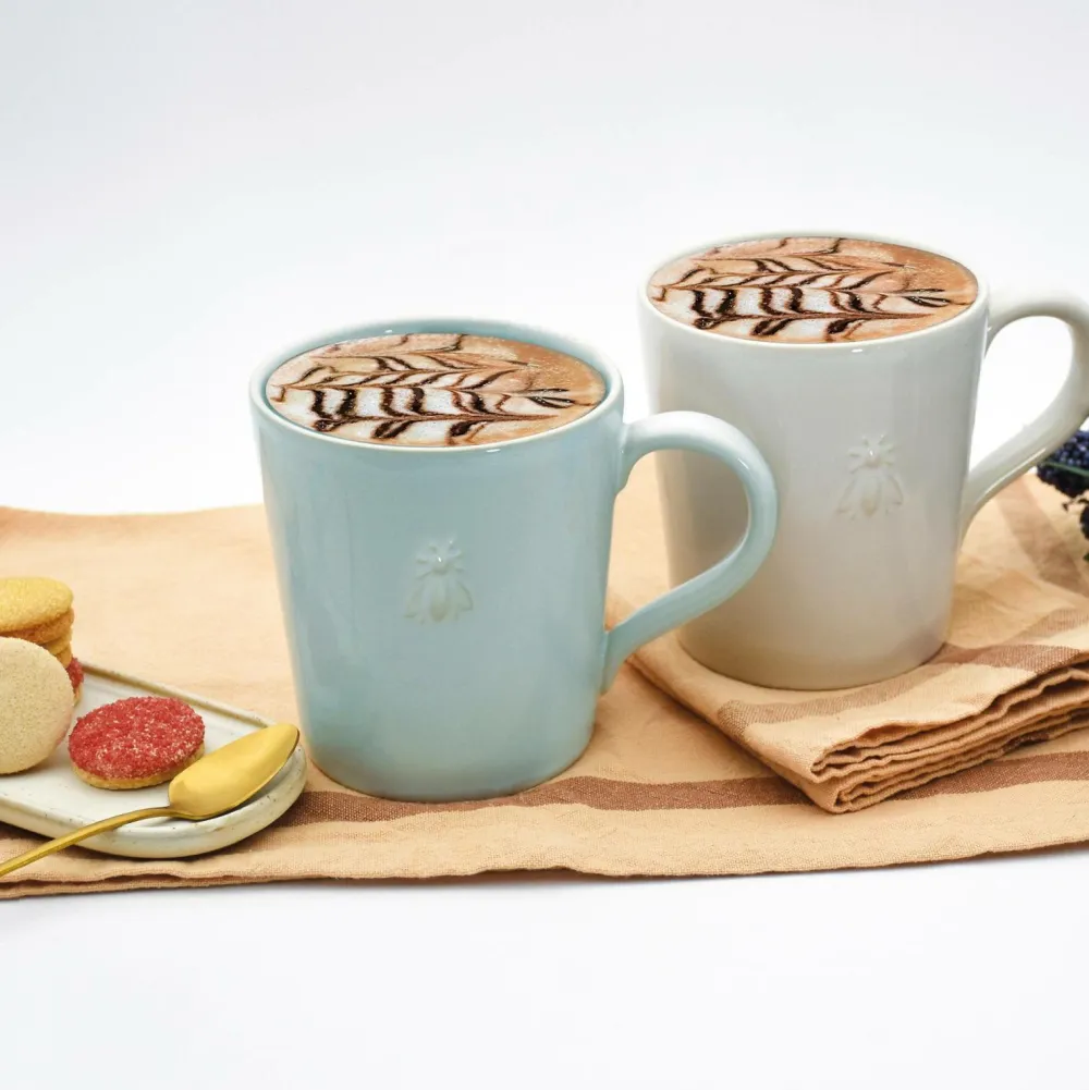 Hvidt keramikkrus abeille 2 stk fra franske la rochère . Kruset er dekoreret med napoleonsbier og er perfekt til en varm drik. Abeille-kollektionen er la rochère ‘s signaturglas dekoreret med bier. Bier var det symbol, som Napoleon valgte til sin kroning, og de optrådte på jakker, tæpper, flag og mange andre genstande i løbet af hans regeringstid.