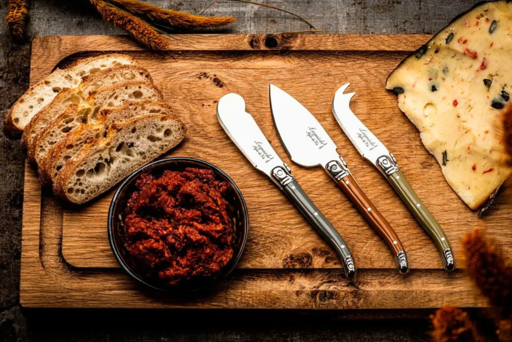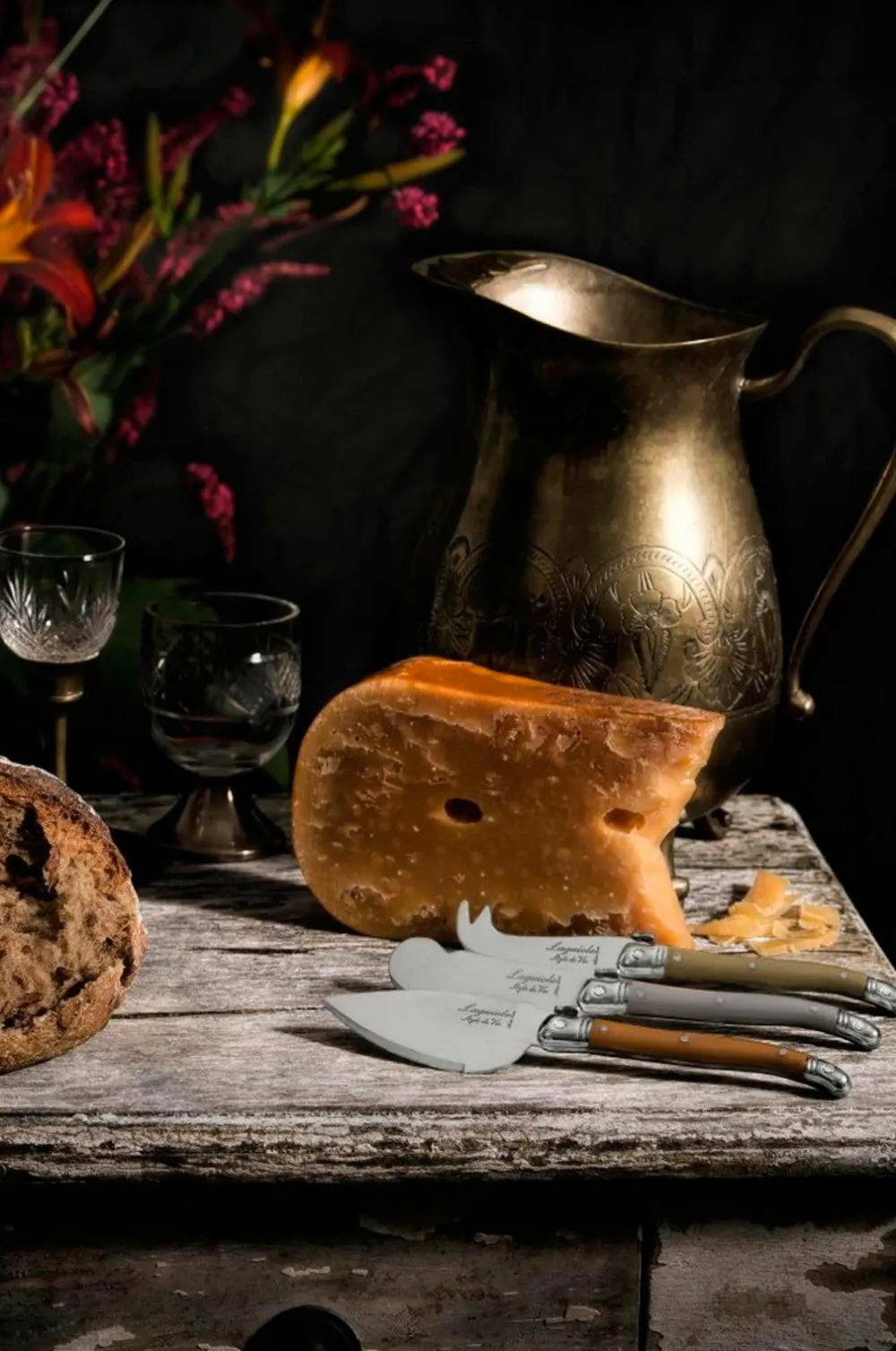 Med dette osteknivsæt i 3 dele fra Laguiole Style De Vie bliver det en sand fest at skære ost. Sættet består af 3 forskellige osteknive. Osteknivenes blade er lavet af rustfrit stål og har et plasthåndtag. Bladet har en tykkelse på 1,2 mm og tåler opvaskemaskine. Den samlede længde af hver ostekniv er 16 cm. Hvert sæt leveres i en gaveæske af træ. Osteknivene fra Laguiole Style De Vie fås også i mange andre farver.