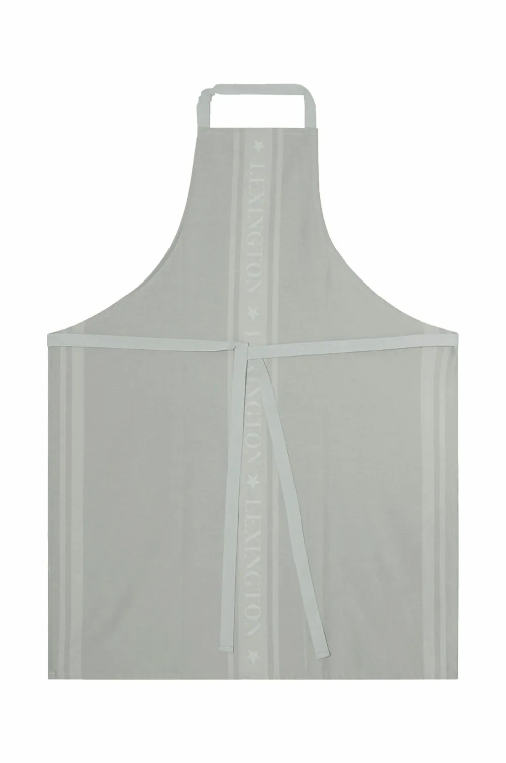 Dette klassiske forklæde i 100 % bomuld har Lexington-logo, jacquardstriber og stjerner, som giver et tidløst look. Det er designet med slidstærke sildebensremme i bomuld og sikrer både stil og funktionalitet. Fuldend sættet med det matchende køkkenhåndklæde, vanter og grydelapper. Fremstillet i Portugal for varig kvalitet. Fås i kjoleblå/hvid, due/hvid, salviegrøn/hvid og sort/hvid. Størrelse: 80×105 cm.
