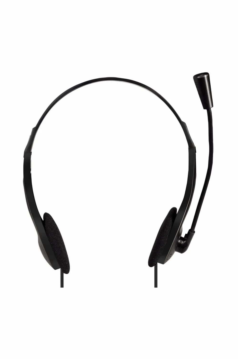 Stereoheadset med mikrofon og 3,5 mm-stik, ideelt til samtaler og spil. Let og behageligt med justerbar hovedbøjle og bløde ørepuder. Har integreret volumenkontrol, fleksibel mikrofon og sort farve. Kompatibel med Windows, Mac og Linux. Specifikationerne omfatter 32 ohm impedans, 20-20000 Hz frekvensområde og 1,8 m kabel. Pakken indeholder headset og manual. Produktet er CE-certificeret og leveres med sikkerhedsinstruktioner på svensk.