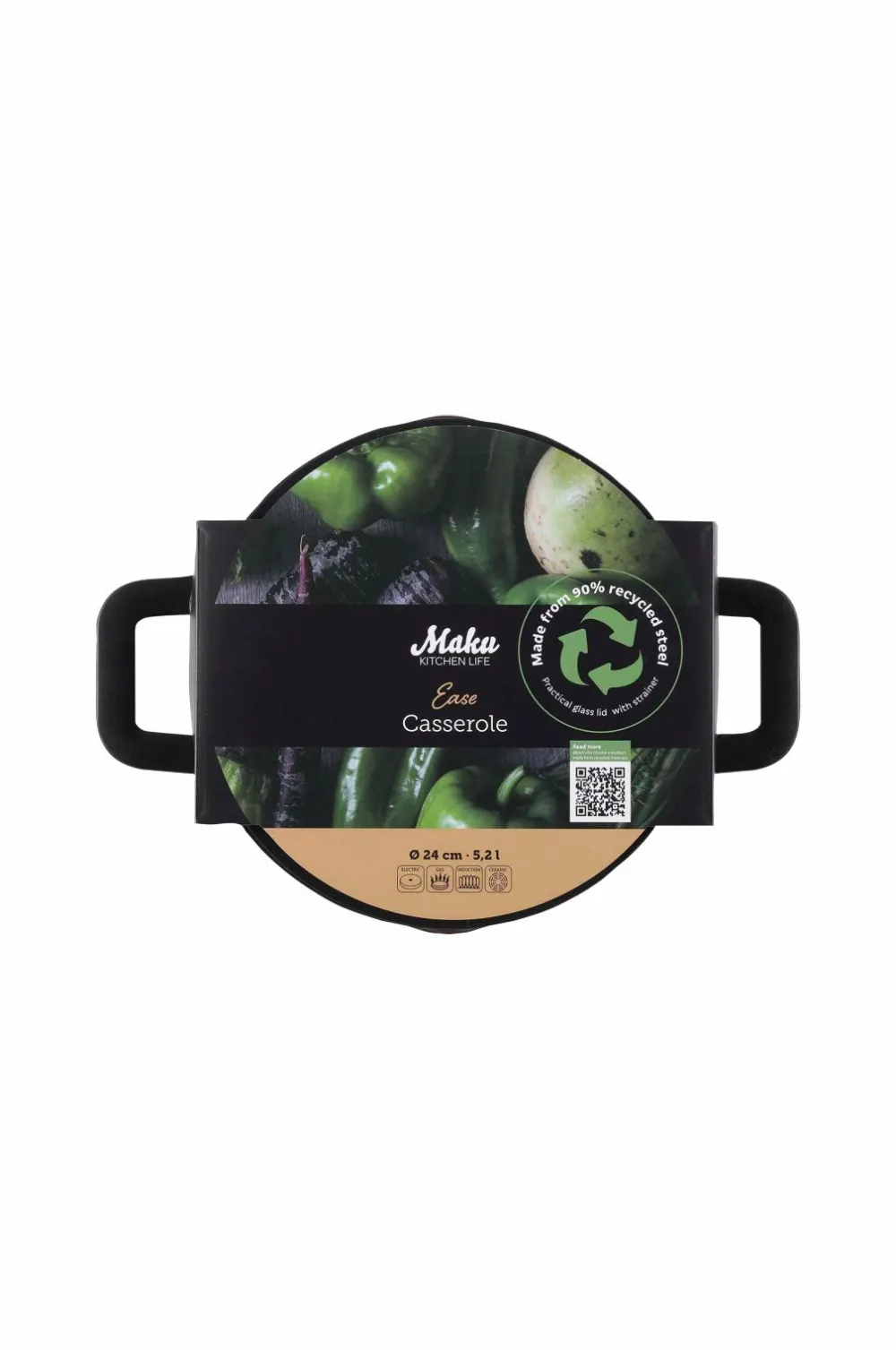 – Maku Ease-kasserolle i rustfrit stål til nem madlavning