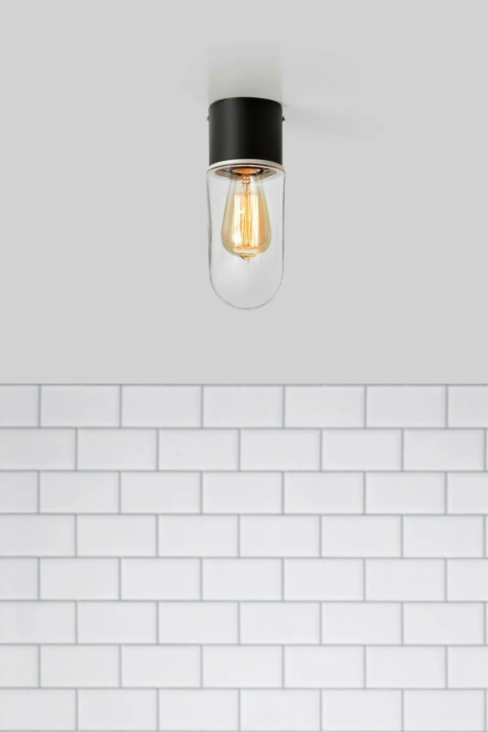 Zen loftlampe fra Markslöjd. Loftlampe med base i metal og glas. IP44. Godkendt til badeværelser. Montering med loftbeslag. Mål: Bredde 10 cm, dybde 10 cm og højde 25,5 cm. Maks. 1x15W. E27-fatning. Pære medfølger ikke. Kan dæmpes.