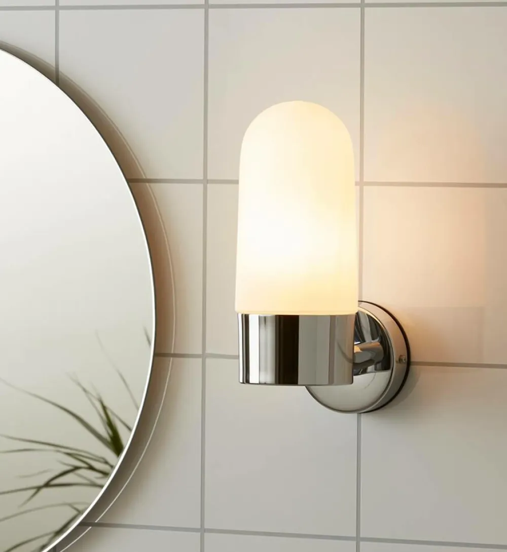 Zen væglampe fra Markslöjd. Væglampe med base i krom og glas. IP44. Godkendt til badeværelser. Monteres med beslag. Mål: Bredde 10 cm, dybde 17,5 cm og højde 26 cm. Maks. 1x15W. E27-fatning. Pære medfølger ikke. Kan dæmpes.
