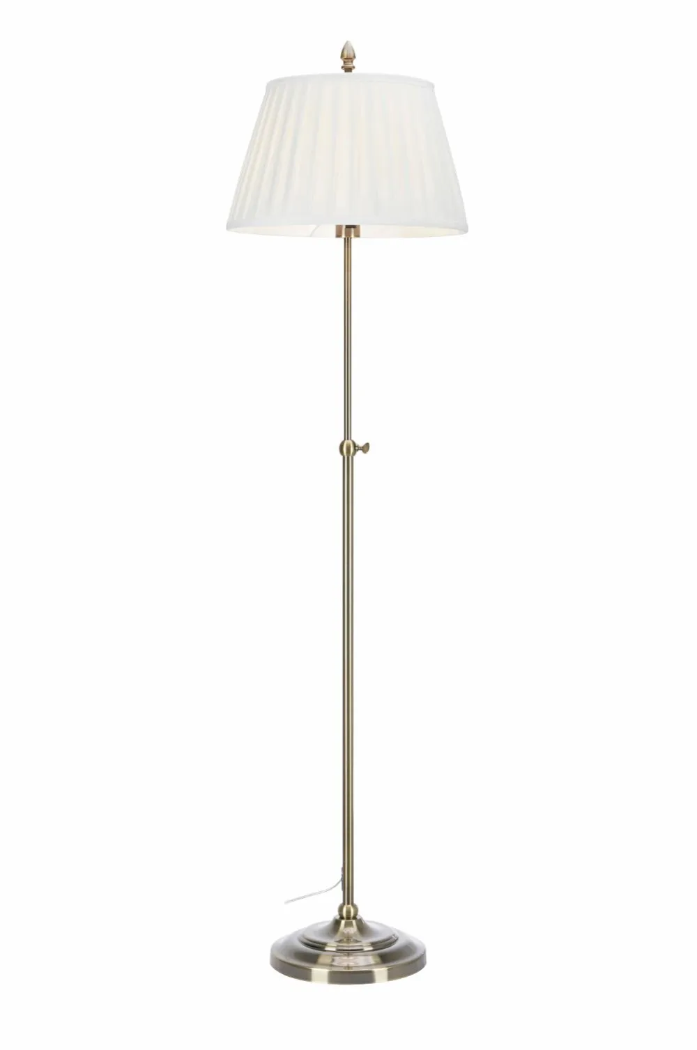 Oxford Gulvlampe fra markslöjd. Tekstilskærm med base i metal. Justerbar højde, i alt 118-155 cm. 2 m pvc-kabel med vægstik. Tændt fatning. 1xe27, maks. 40w. Klasse Ii. Lyskilde medfølger ikke.