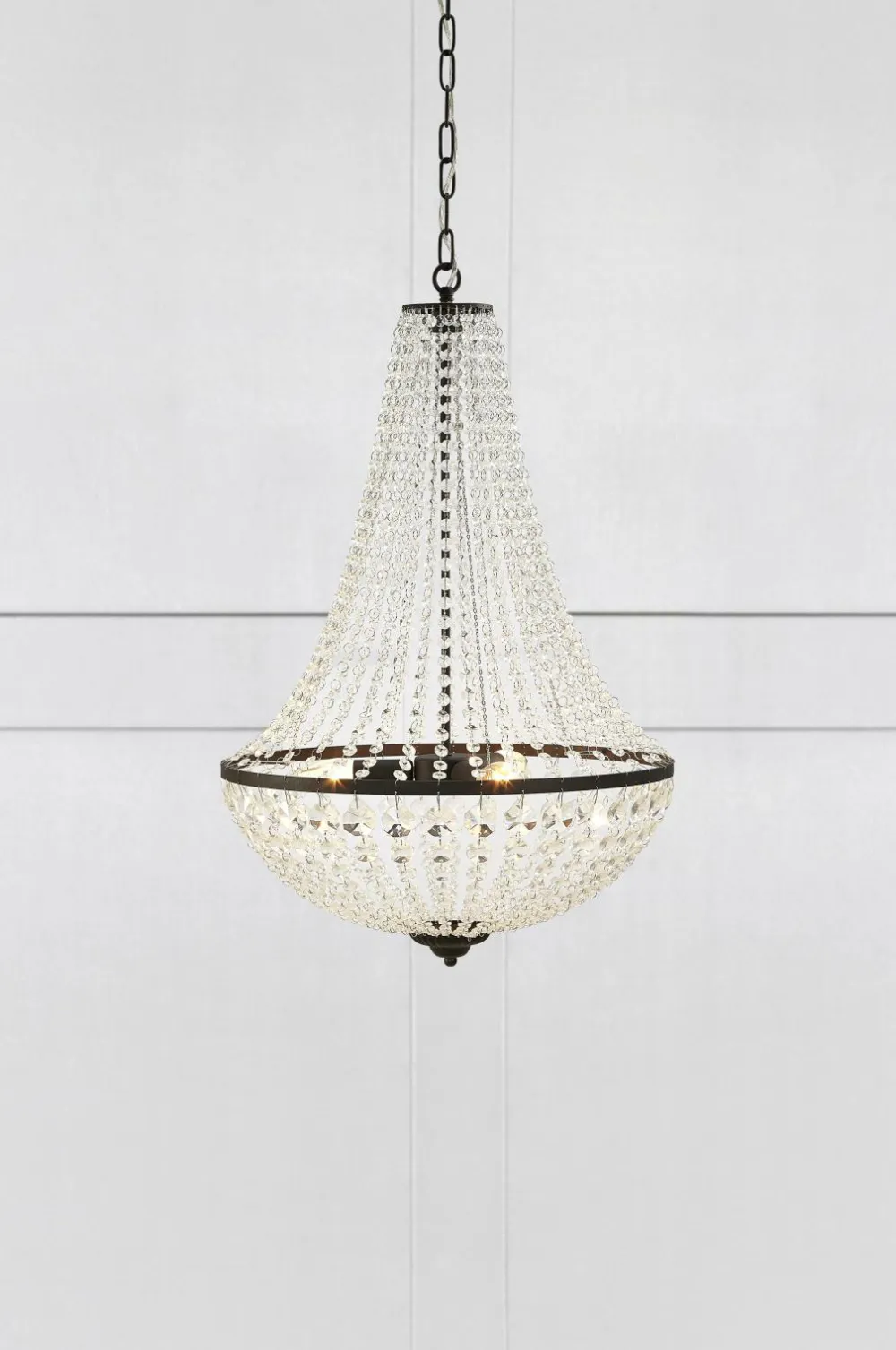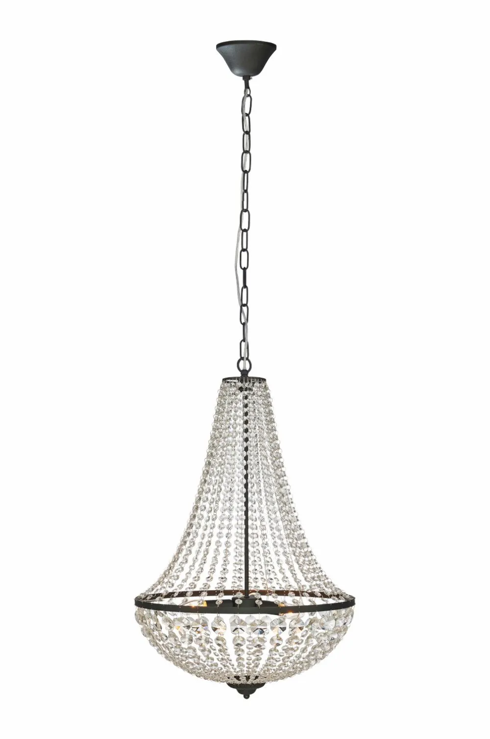 Markslöjd krystallysekrone Gränsö. Sort metal og klare prismer. Tre lyskilder. Små sokler (E14) til max. 40 W pærer eller tilsvarende i halogen, lavenergi- eller LED-pærer. Baldakin. 1,5 m kæde. Pære medfølger ikke.