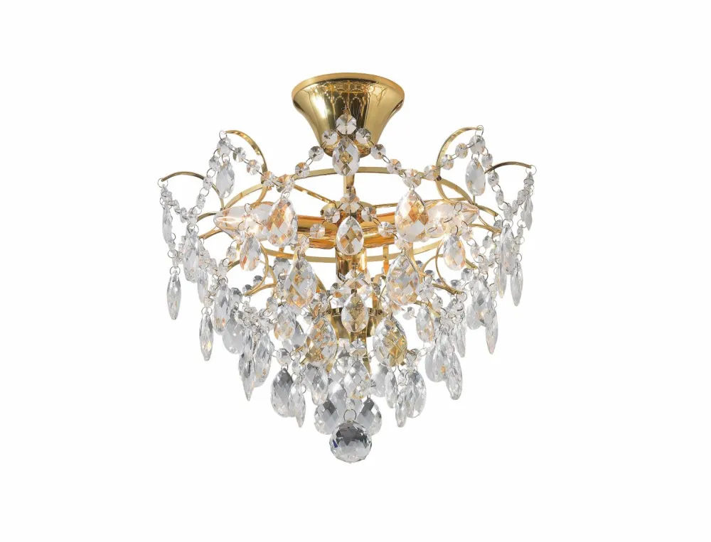 Bredde: 36 cm. Højde: 34 cm. Dybde: 36 cm. Farve skærm: Maskinslebet krystal. Ophængning: Krog. Antal lyskilder: 3. Maks. effekt: 40W. Sokkel: E14. IP-Klasse: IP20.