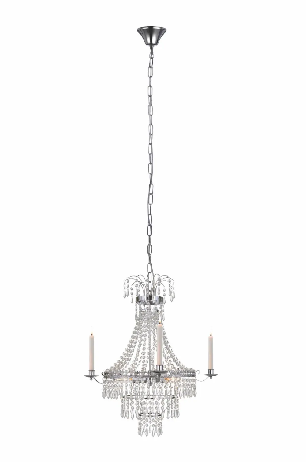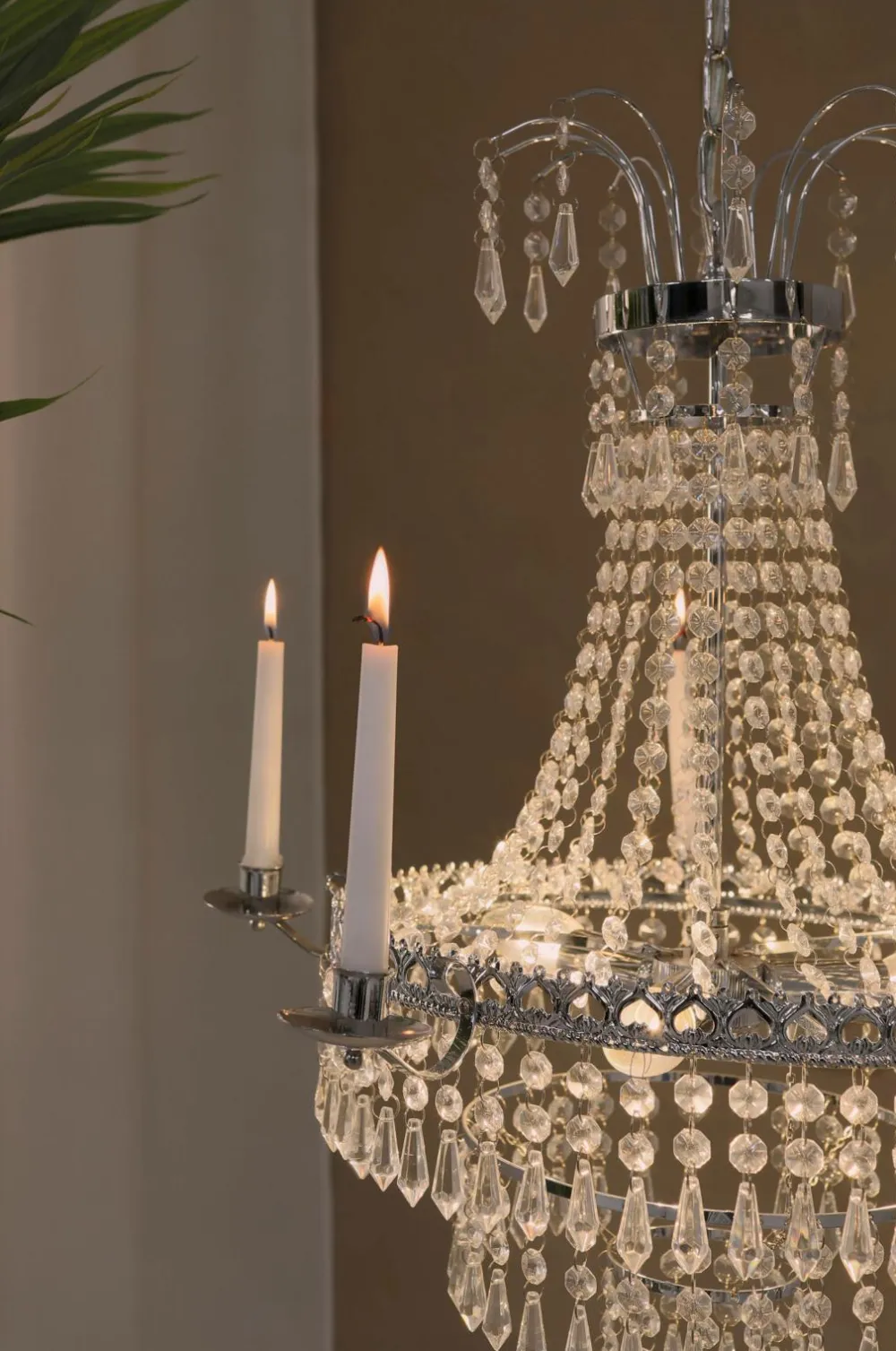 Krystallysekrone Marielund fra Markslöjd. Stel i metal. Maskinskårne prismer. 1,2 m kæde med baldakin til krogophængning. Jordet tilslutning. Små fatninger (E14). Maks. 40 W glødepære eller tilsvarende styrke i halogen, lavenergi eller LED.Lampeudtag til loftet indgår ikke på grund af et nyt EU-direktiv. De kan bestilles separat.