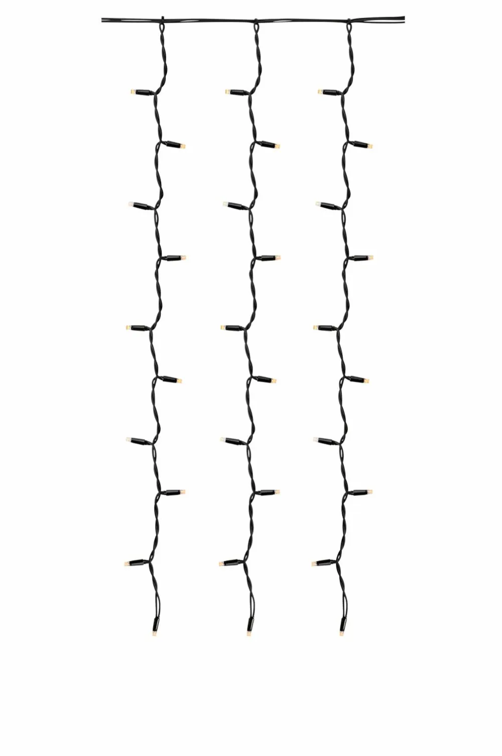 Chrissline gardin klar original fra Markslöjd. 10 stk. 1 meters længde i PVC fordelt på 1,5 meters bredde. 15 cm mellem længderne. 10 cm mellem pærerne. 100 integrerede klare LED-lyskilder. Kan kobles sammen til maksimalt 100 m eller 2500 lyspunkter. Startkabel sælges separat.