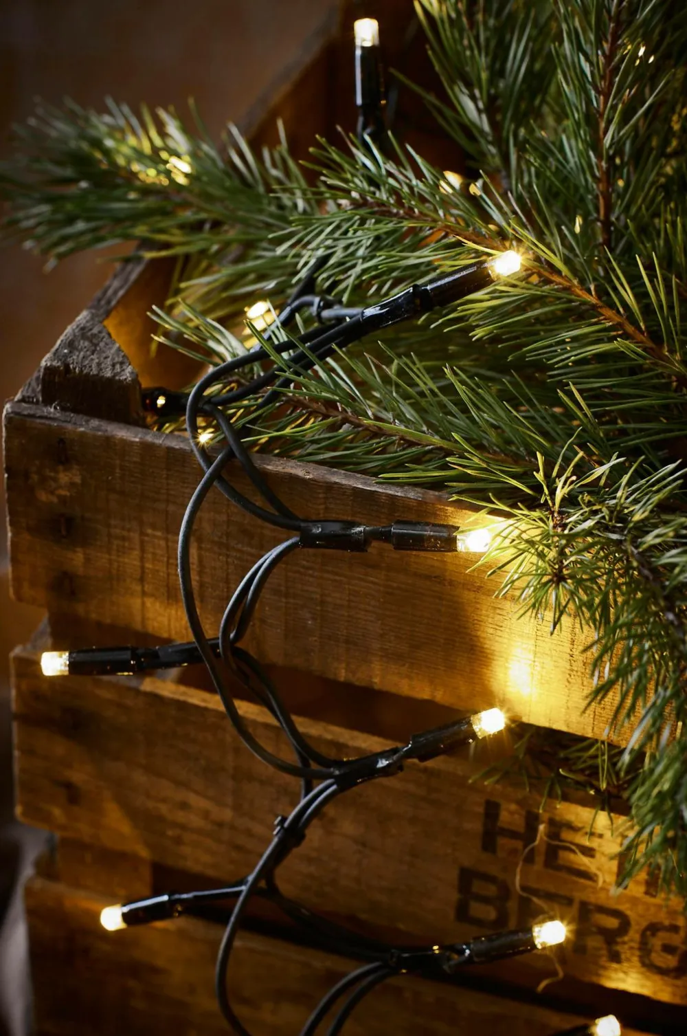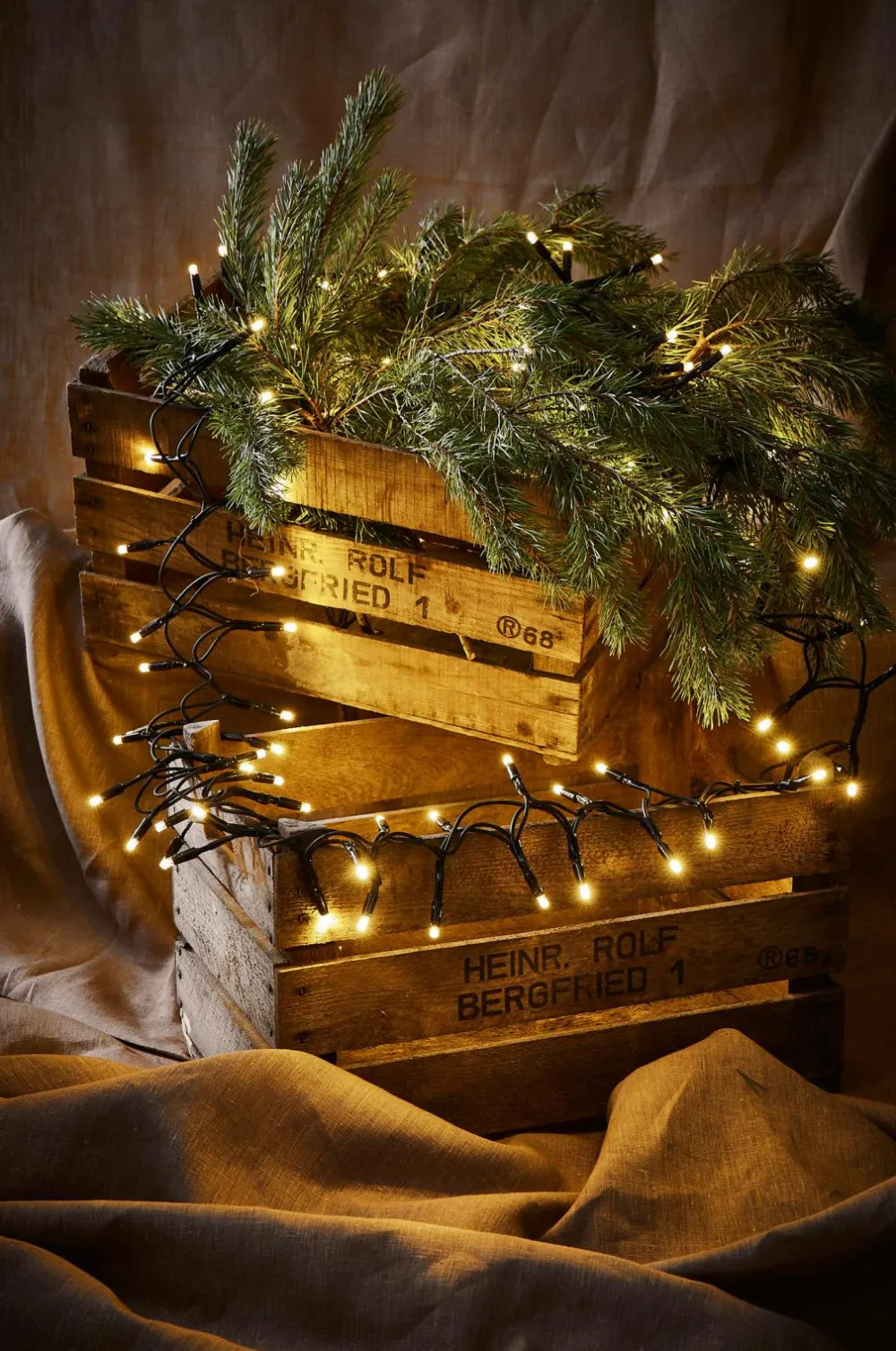 Chrissline crab fra Markslöjd. 5 meter lyskæde i pvc, med 100 integrerede LED-lyskilder med varmt hvidt skær. 5 cm mellem pærerne. Kan kobles sammen til maksimalt 100 m eller 2500 lyspunkter. Startkabel sælges separat.