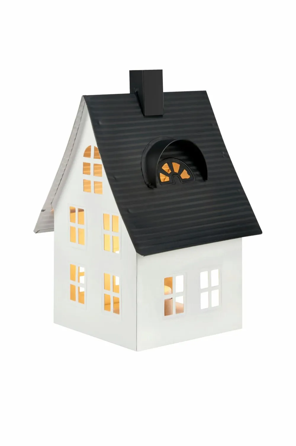 Luton Borddekoration fra markslöjd. Borddekoration i form af et hus i metal. Der medfølger led-te-lys med tænd/sluk-knap og timer. Timer 8 timer tændt og 16 timer slukket. Drives af 1xcr2032-batteri. Batteri medfølger ikke.