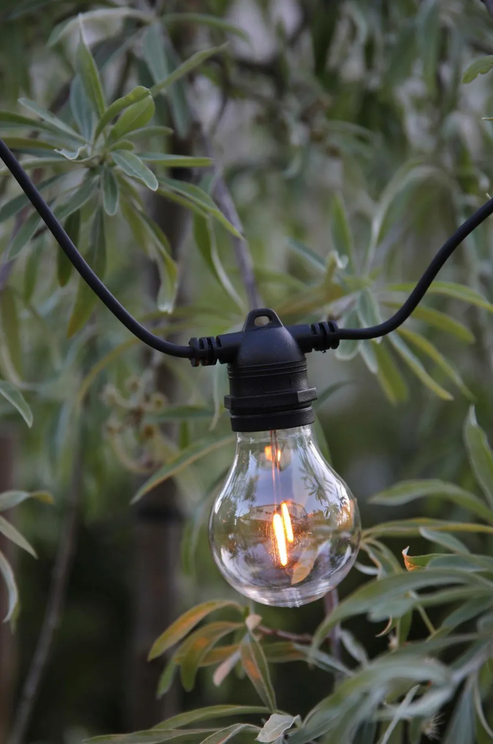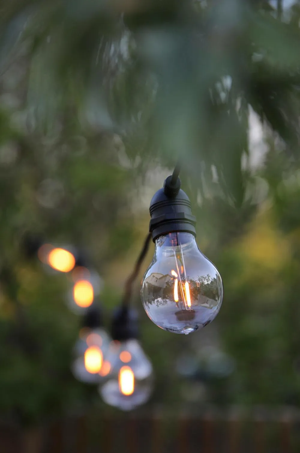 Link ekstra lyskæde fra markslöjd. 10 stk a60-lys. 50 cm mellem lysene. Kan dæmpes i 4 trin. Varmt hvidt lys 1900k. Til udendørs brug ip44. Denne lyskæde kan kun tilsluttes link start model 108902, max 2 stk. 3 m forlængerkabel og transformer medfølger ikke.
