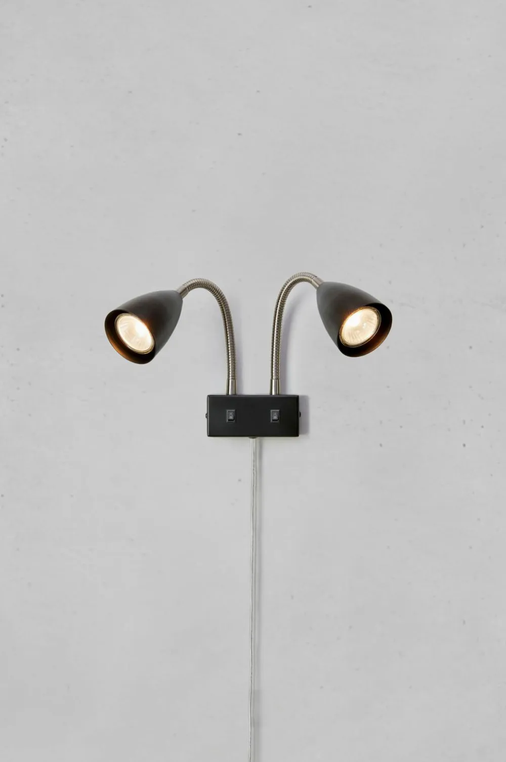 Ciro væglampe fra markslöjd. Vægplade og skærm i metal, med bøjelige arme i satineret nikkel. 2 m pvc-kabel og vægstik. Indbygget afbryder på vægpladen. Tilslutningsboks inde i vægpladen for nem fjernelse af kabel og ændring til fast installation. Monteret med vægbeslag. 1xgu10, max 7w led. Klasse ii. Lyskilder medfølger ikke.
