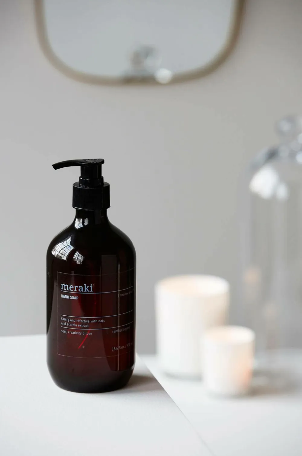 Merakis håndsæbe Meadow Bliss er et økologisk, certificeret produkt. Meadow Bliss har friske duftnoter af citron, mynte og te. Håndsæben kommer i en enkel og flot flaske, som giver dit badeværelse eller køkken en fin dekorativ detalje. Sæben er velegnet til daglig brug og til alle hudtyper. Nyd duften af dine rene hænder og kombinér med en plejende håndcreme.