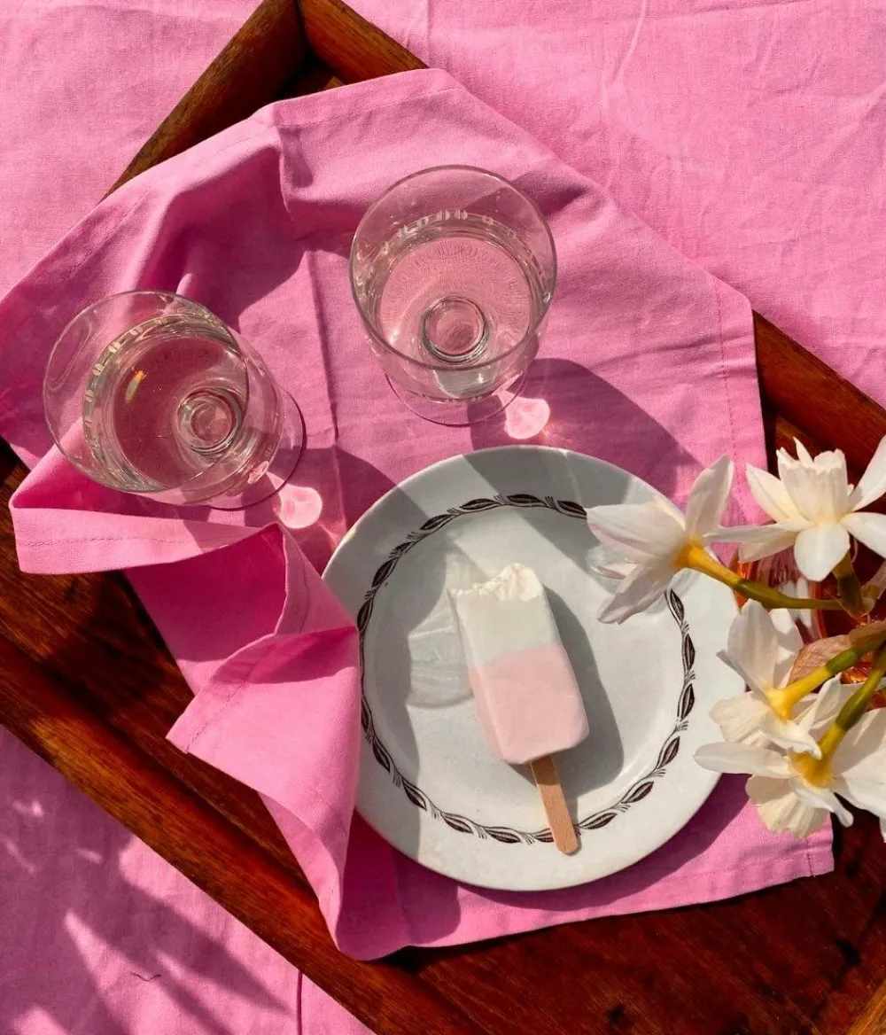 Servietterne fra Pink kommer i et sæt med fire. Stoffets farve er en lys pink, og størrelsen er 40×40 cm. Servietterne er GOTS-certificerede og fremstillet af 100 % økologisk bomuld.
