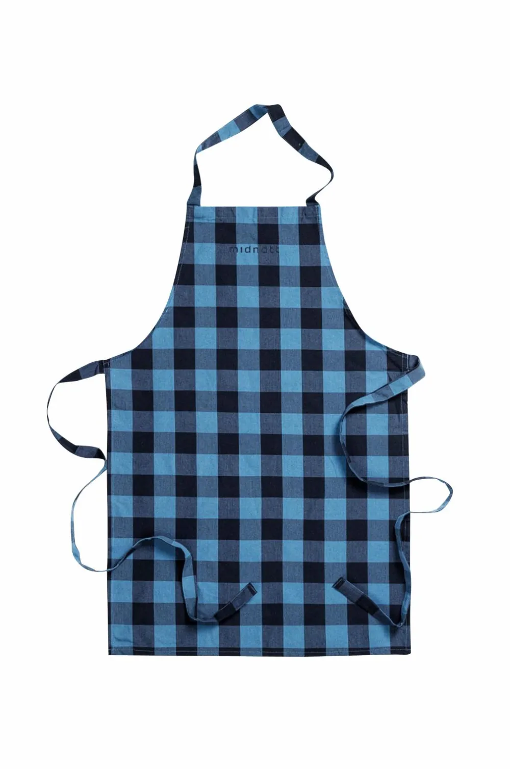 Forklæde i genanvendt bomuld. Det gignhamønstrede stof er lavet af genanvendt bomuldsgarn, der er fremstillet af affaldsprodukter fra den indiske tekstilindustri.