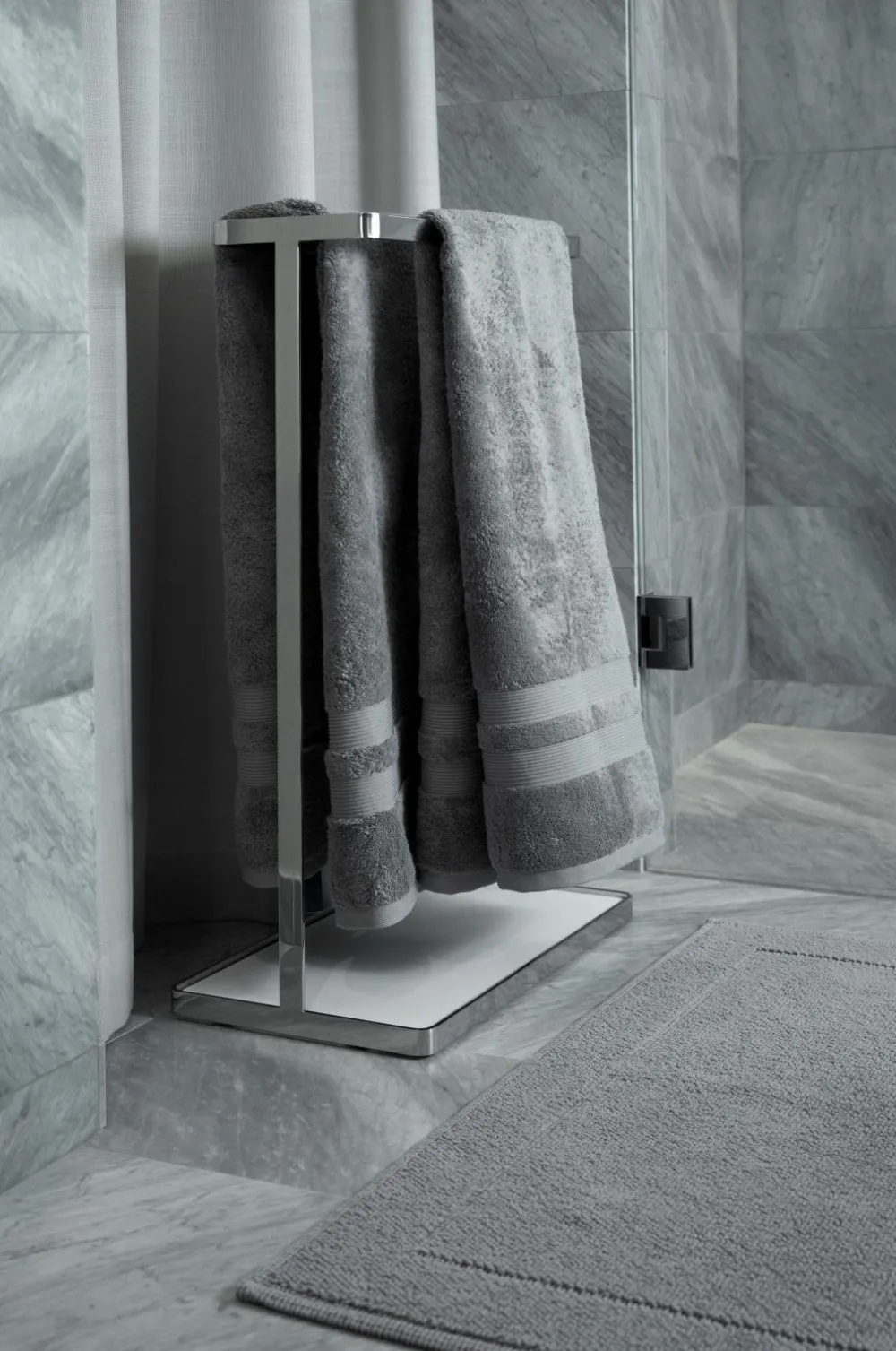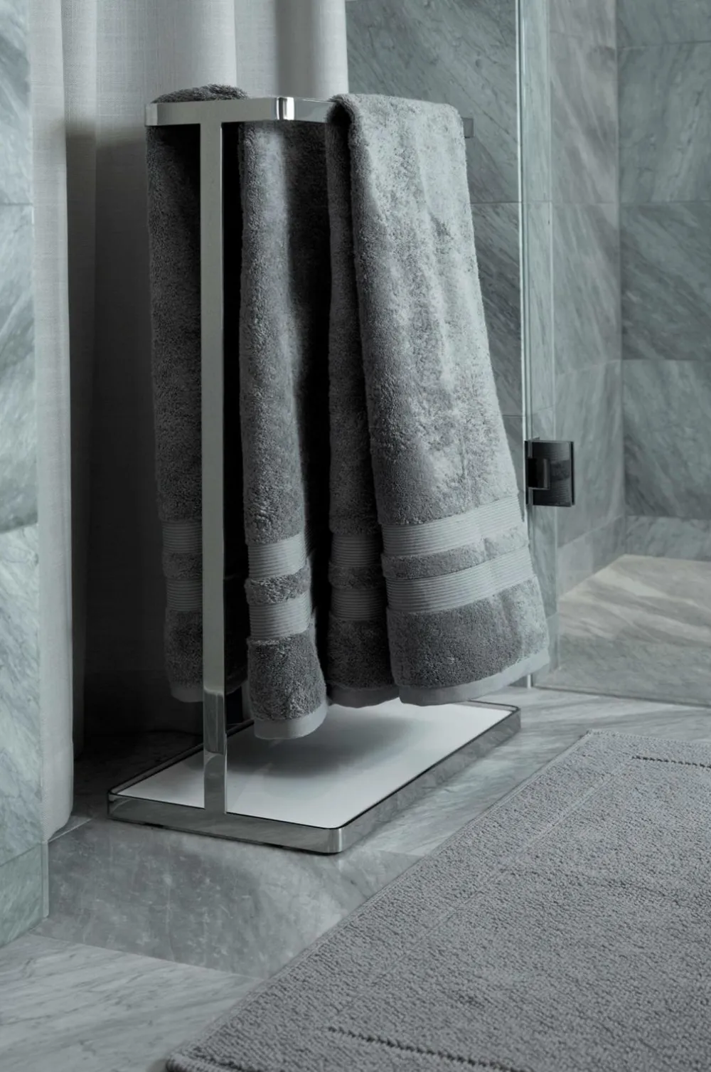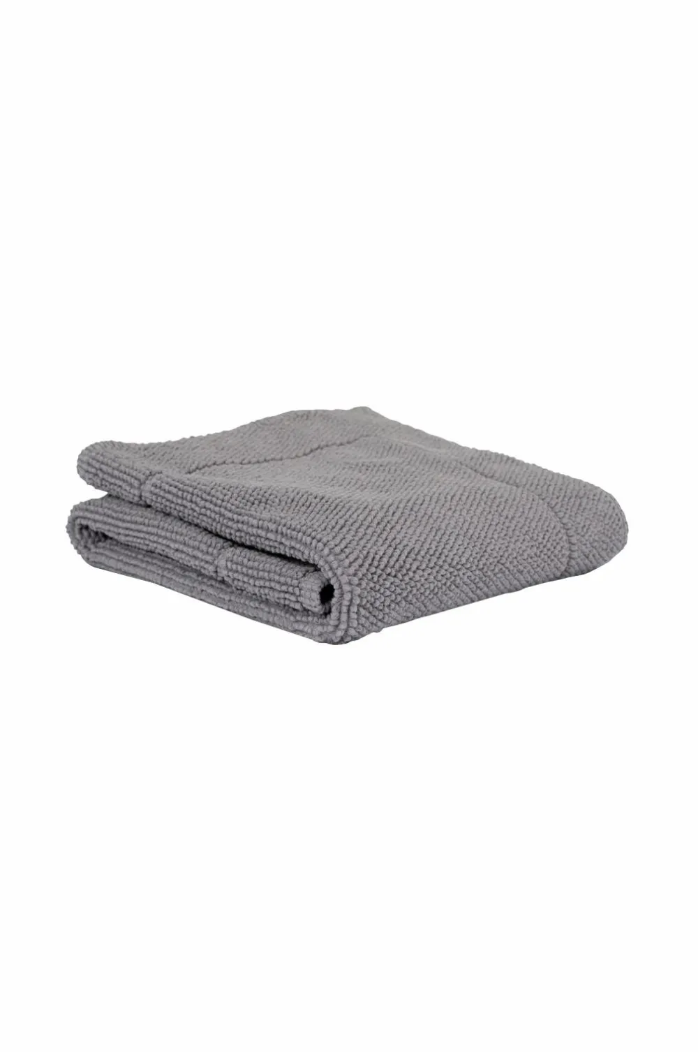 Badeværelsesmåtte i stonewashed bomuldsfrotté med indvævet bort i en ramme. Oeko-Tex Standard 100