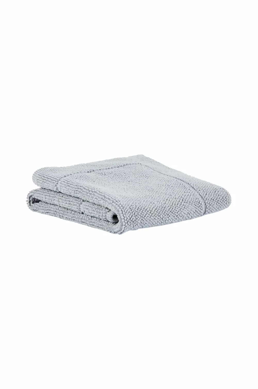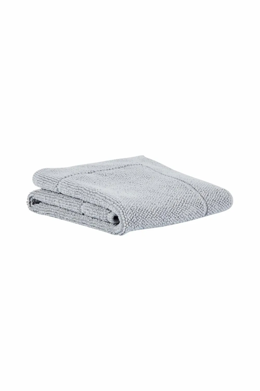 Badeværelsesmåtte i stonewashed bomuldsfrotté med indvævet bort i en ramme. Oeko-Tex Standard 100