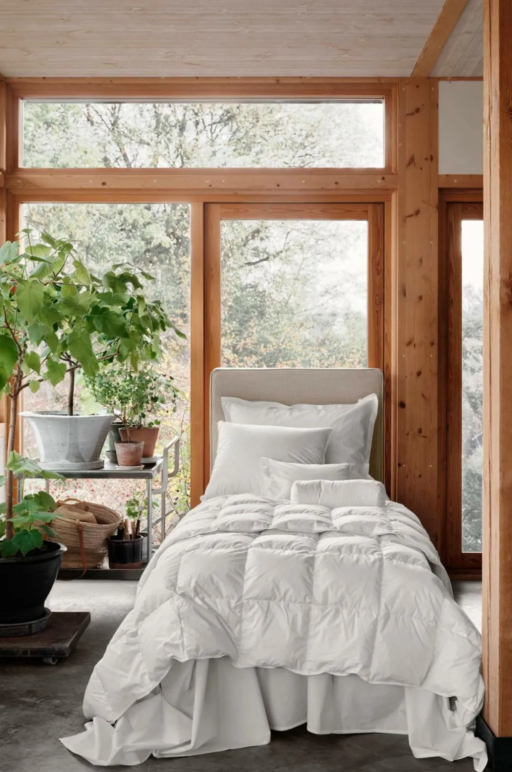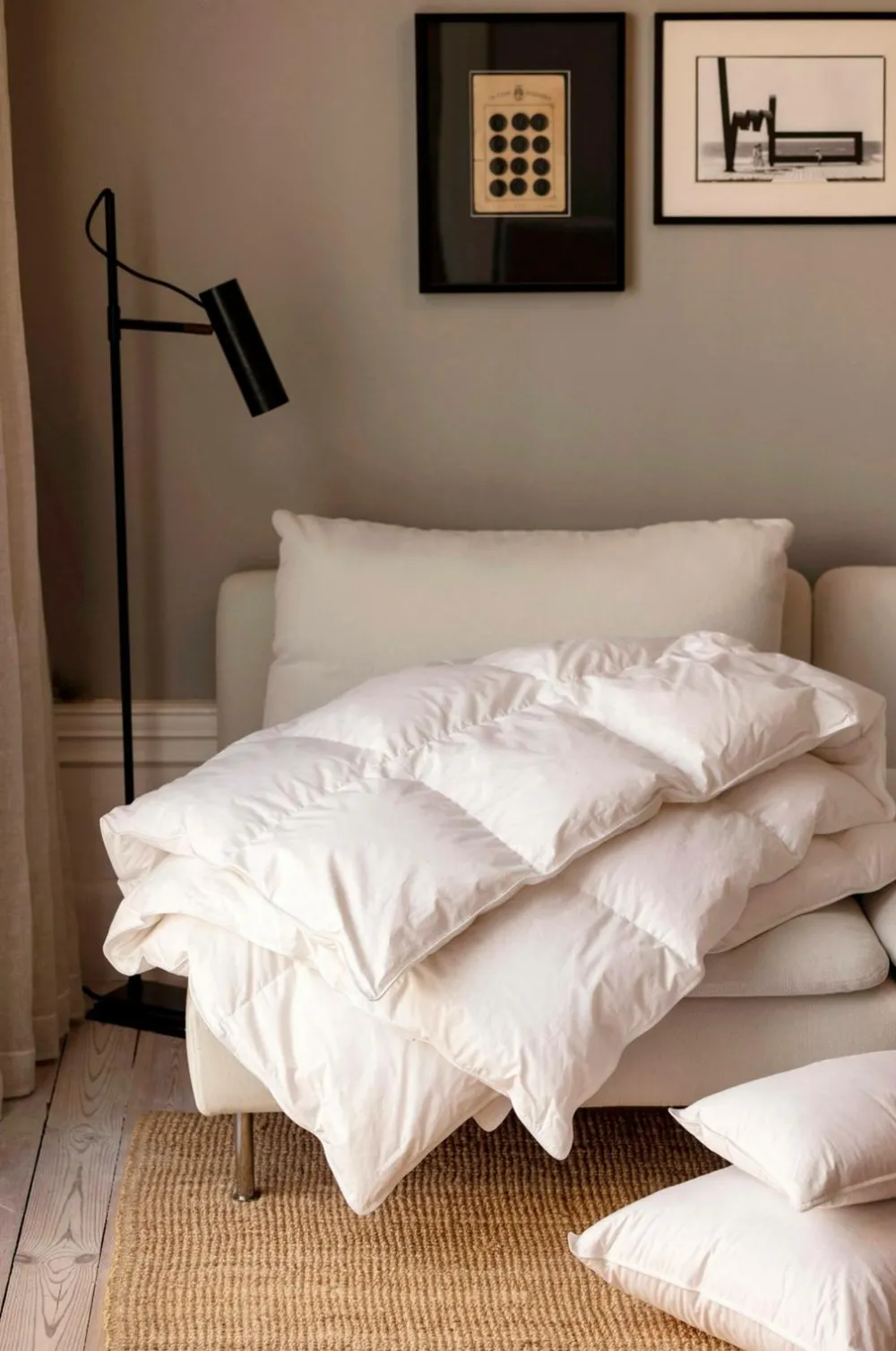 Dyne fyldt med hvide gåsedun. Europæisk klasse 1 dun. 90% gåsedun og 10% gåsefjer. Stof i hvid, duntæt bomuldscambric, 280 tc, syet med piping. Syet med mellemvægge. Alle dynerne har en bæreevne på 10+. Dynen er pakket i en stoftaske. Öko Tex Standard 100. Anbefalet af Astma og Allergiforbundet. Certificeret af IDFL for at garantere, at dunene ikke er plukket fra levende fugle samt at der ikke er forekommet tvangsfodring under opdræt af fuglene. Fremstillet i Polen. Rengøring: Luftes og rystes hyppigt. Vaskes på 60°. Tørretumbles ved middelvarme til dynen er helt tør. Vi anbefaler, at dynen tørretumbles sammen med et par tennisbolde , så du undgår at dunene klumper sammen under tørring.