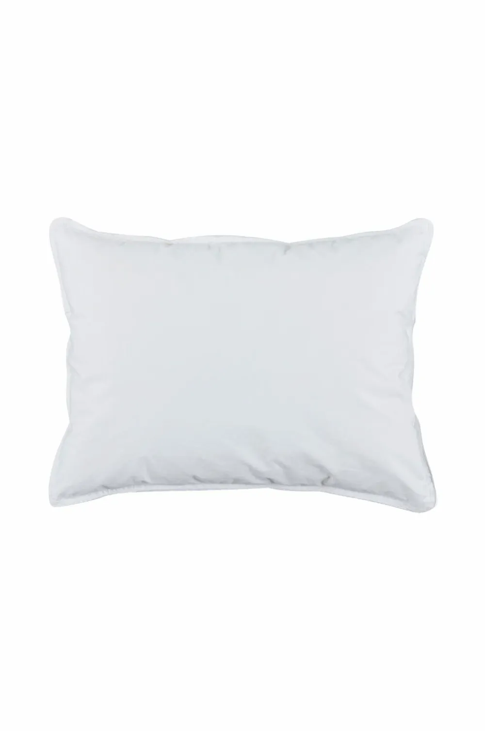 Fiberpude fyldt med 70% Fossflakes og 30% polyester kuglefibre, som giver en dunagtig følelse. Stof i hvid bomuldscambric med piping. Puden er pakket i en stoftaske. Oeko-Tex Standard 100. Fremstillet i Polen.