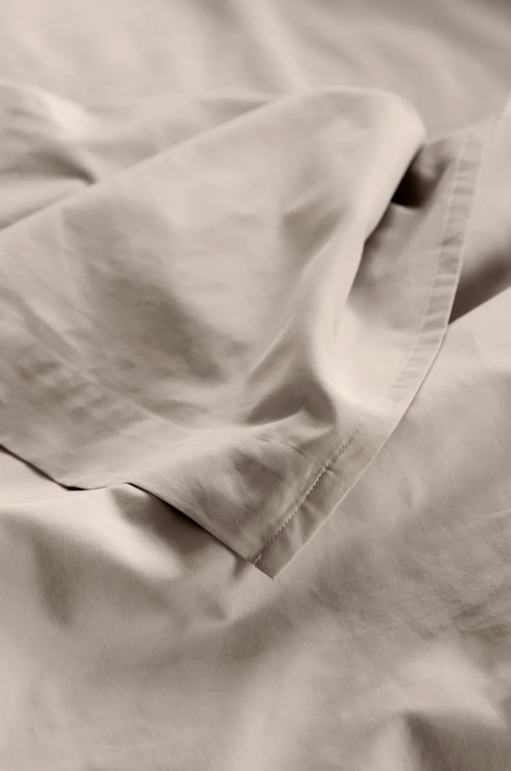 Glat lagen i kæmmet bomuldssatin. Trådtæthed 340 tc. Syet med bred søm i hovedenden og kan derfor med fordel også anvendes som overlagen. Öko-Tex Standard 100. Satina findes også som dynebetræk og pudebetræk. Fremstillet i Portugal. Vaskeanvisning: Vaskes på 60°. Hængetørres. Må ikke tørretumbles. Stryges ved høj varme for at få satinvævningens flotte glans frem.