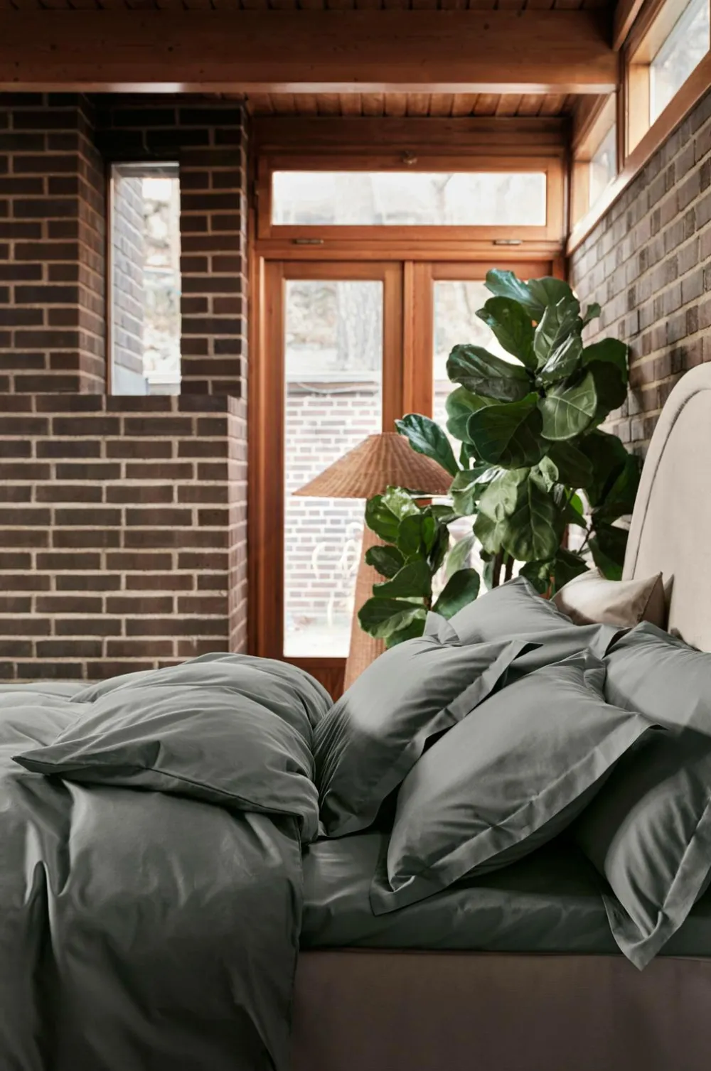 Glat lagen i kæmmet bomuldssatin. Trådtæthed 340 tc. Syet med bred søm i hovedenden og kan derfor med fordel også anvendes som overlagen. Öko-Tex Standard 100. Satina findes også som dynebetræk og pudebetræk. Fremstillet i Portugal. Vaskeanvisning: Vaskes på 60°. Hængetørres. Må ikke tørretumbles. Stryges ved høj varme for at få satinvævningens flotte glans frem.