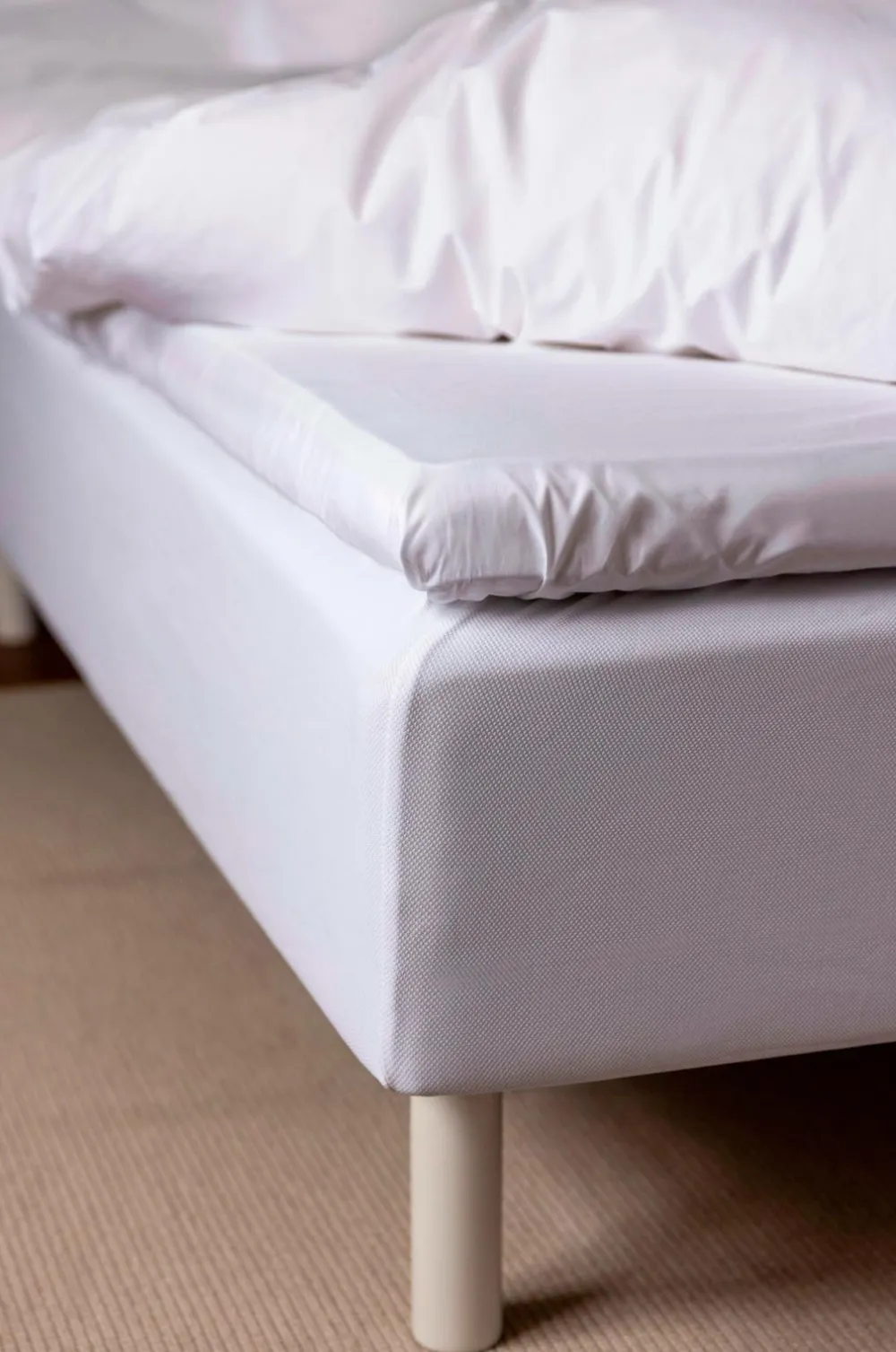 Bundbetrækket er nemt at montere på madrassen og fastgøres under sengen med elastiske bånd udstyret med knapper for at sikre, at det sidder perfekt på plads.