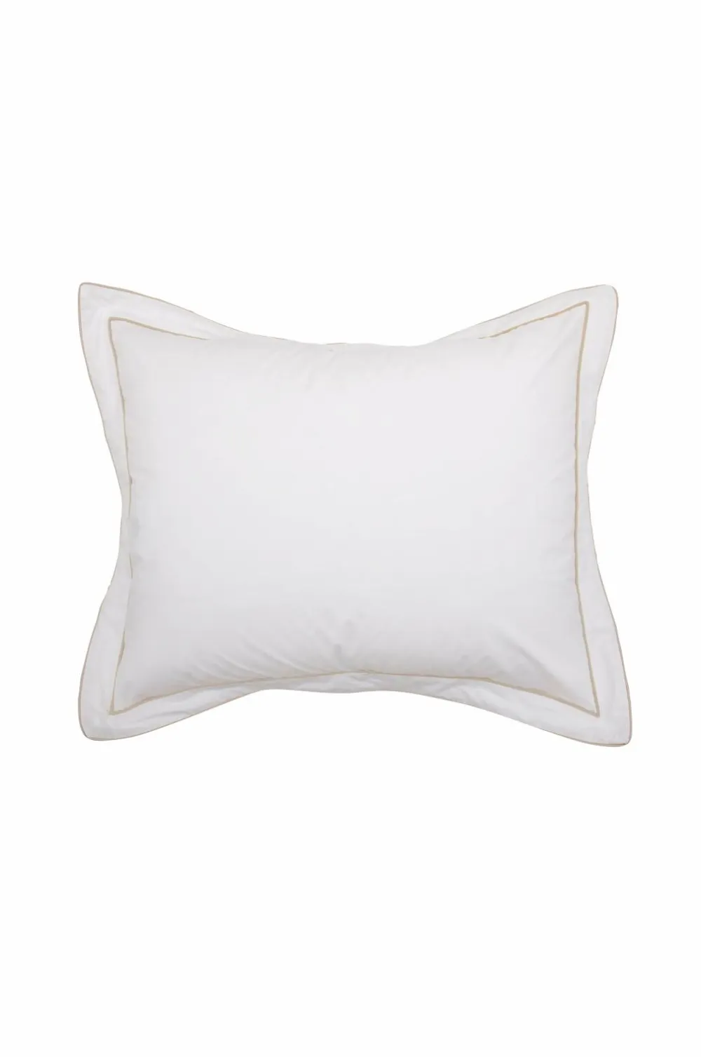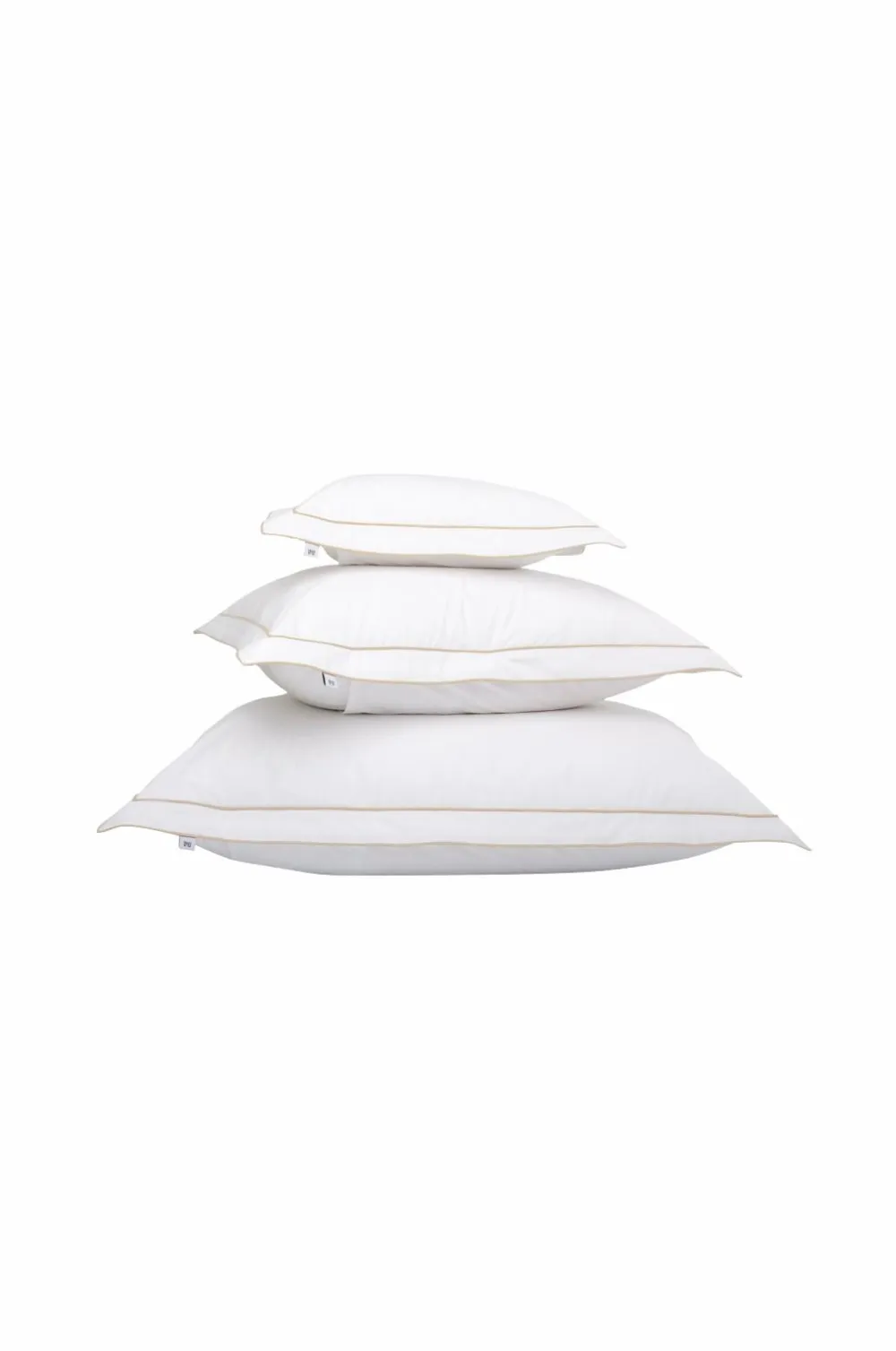 Pudebetræk i sprød percale lavet af finkæmmet økologisk bomuld. Trådtæthed 230 tc. Pudebetrækket har en gul piping, der giver en moderne og luksuriøs indramning. Pudebetrækket er syet med en 4 cm vinge og overlapning på bagsiden. Produktet er certificeret af GOTS (Global Organic Tekstil Standard). Fremstillet i Portugal. STANDARD 100 by OEKO-TEX® Vaskes ved eller under 60 °C. Tåler ikke blegemiddel. Hængetørres. Stryges ved høj temperatur. Tåler ikke kemisk rens.