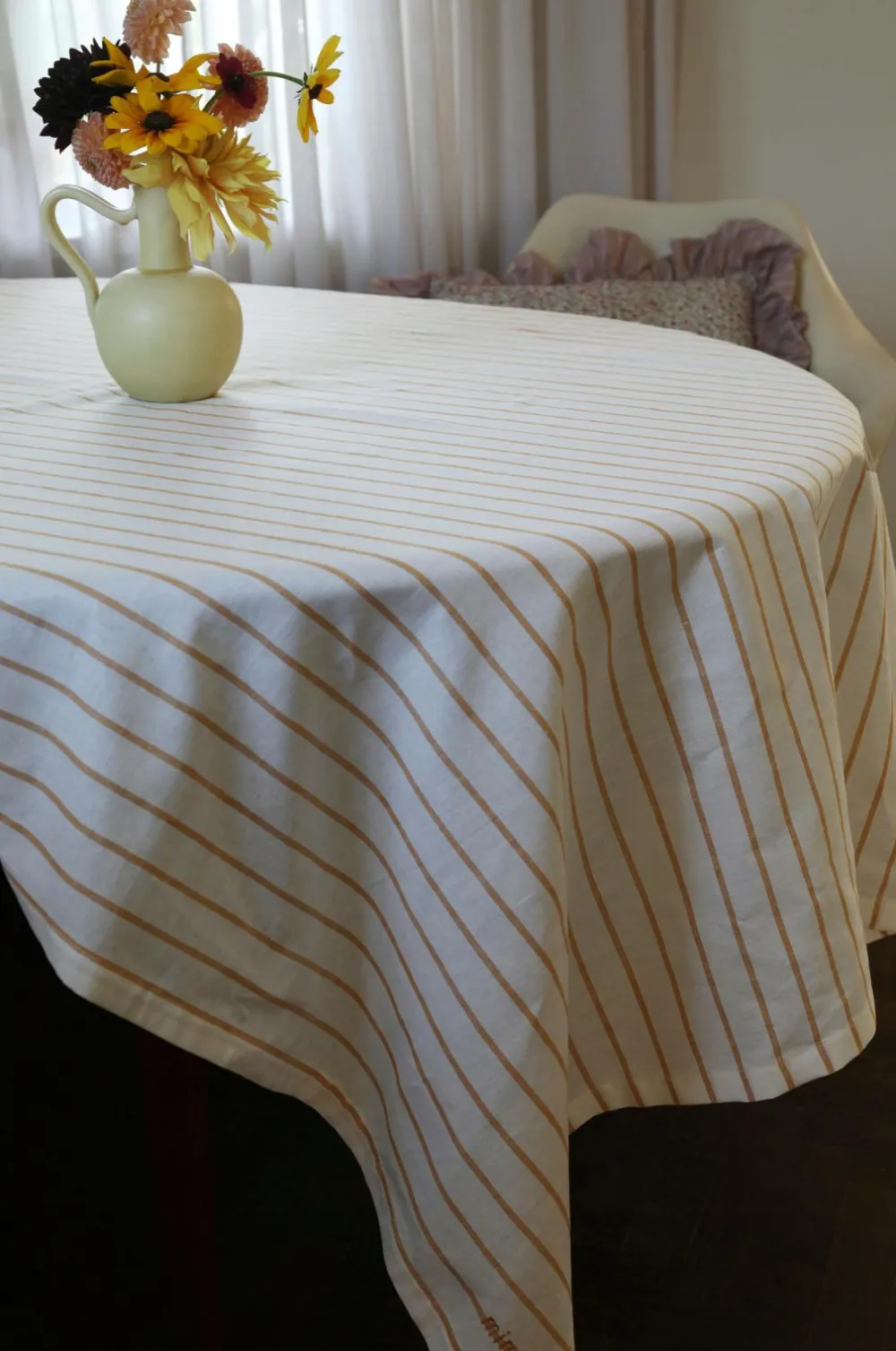 Håndlavet dug skræddersyet af overskudsstoffer fra tøjindustrien. At genbruge materialer i stedet for at fremstille nye er et mere bæredygtigt valg og et skridt i retning af at reducere tekstilaffald. Materiale: 100% Linen Størrelse: Ca. 140X250 cm. Vask: 40 grader skånsom maskinvask. Stoffet kan tørretumbles, men bør tages ud af tørretumbleren, når det er let fugtigt.