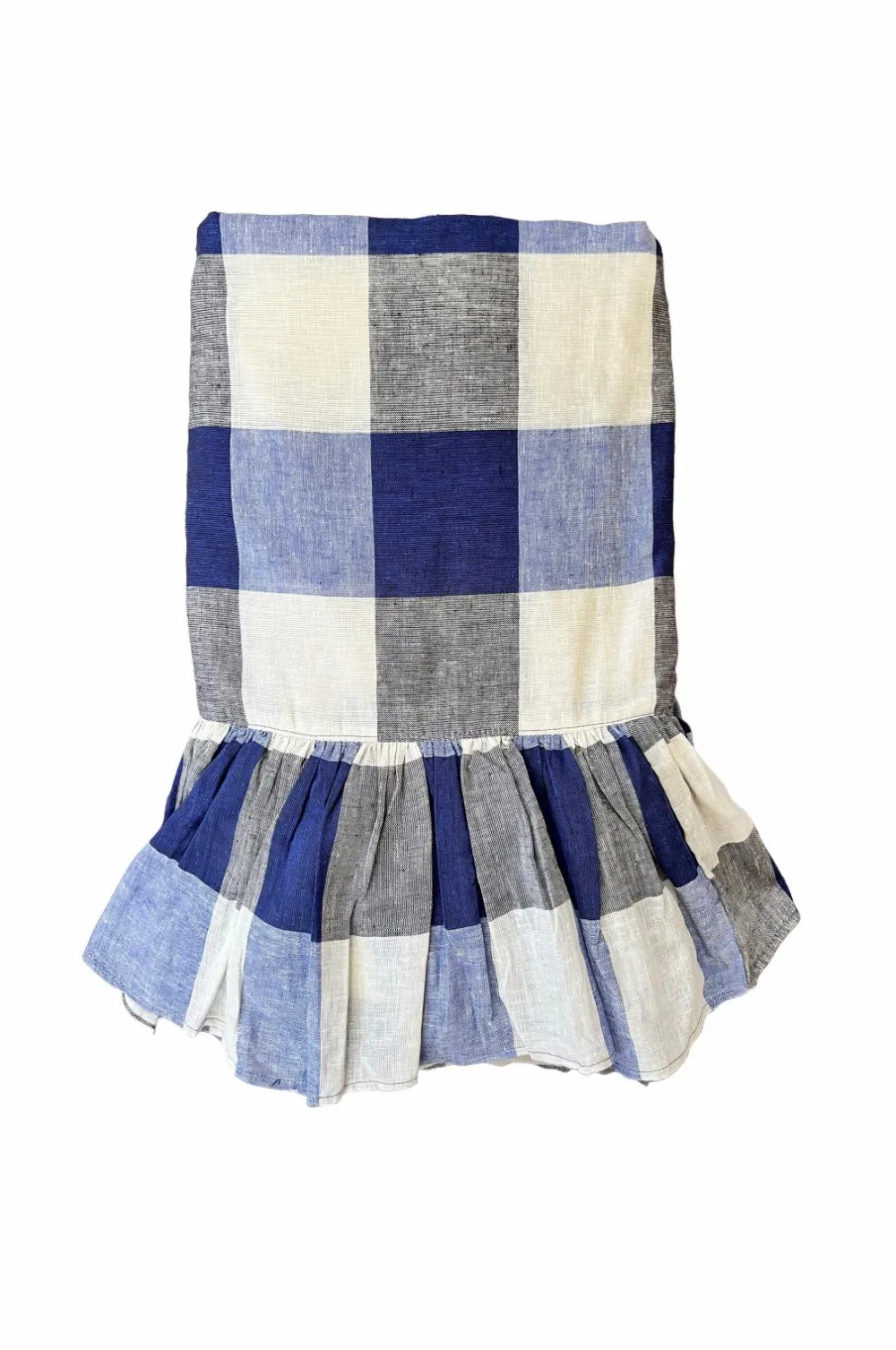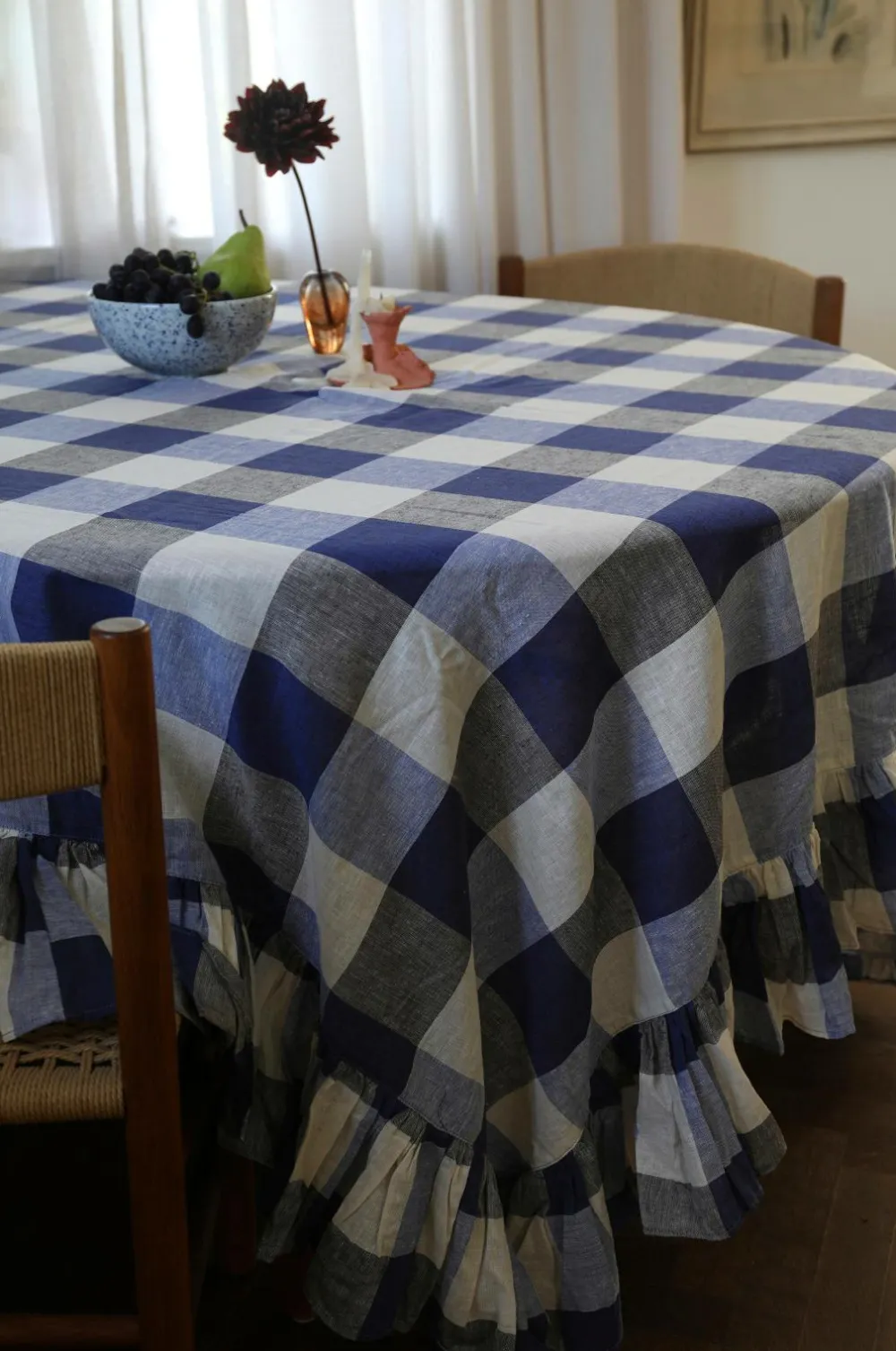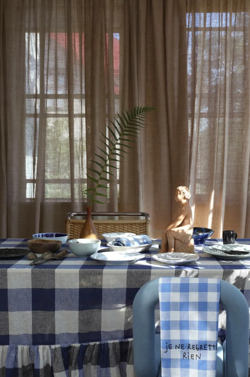 Håndlavet dug syet med en 18 cm lang flæse rundt om alle fire sider. Dugen er lavet af overskudsstoffer fra tøjindustrien. At genbruge materialer i stedet for at fremstille nye er et mere bæredygtigt valg og et skridt i retning af at reducere tekstilaffald. Materiale: 100% bomuld Størrelse: Ca. 140X240 cm + 16 cm frynser på alle 4 sider. Vask: 40 grader skånsom maskinvask. Stoffet kan tørretumbles, men bør tages ud af tørretumbleren, når det er let fugtigt.