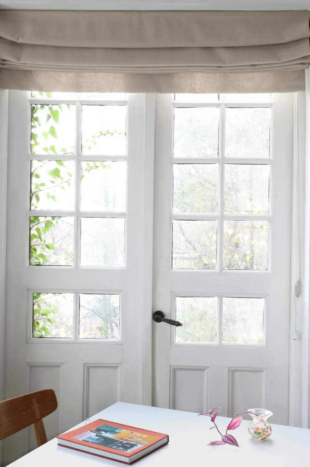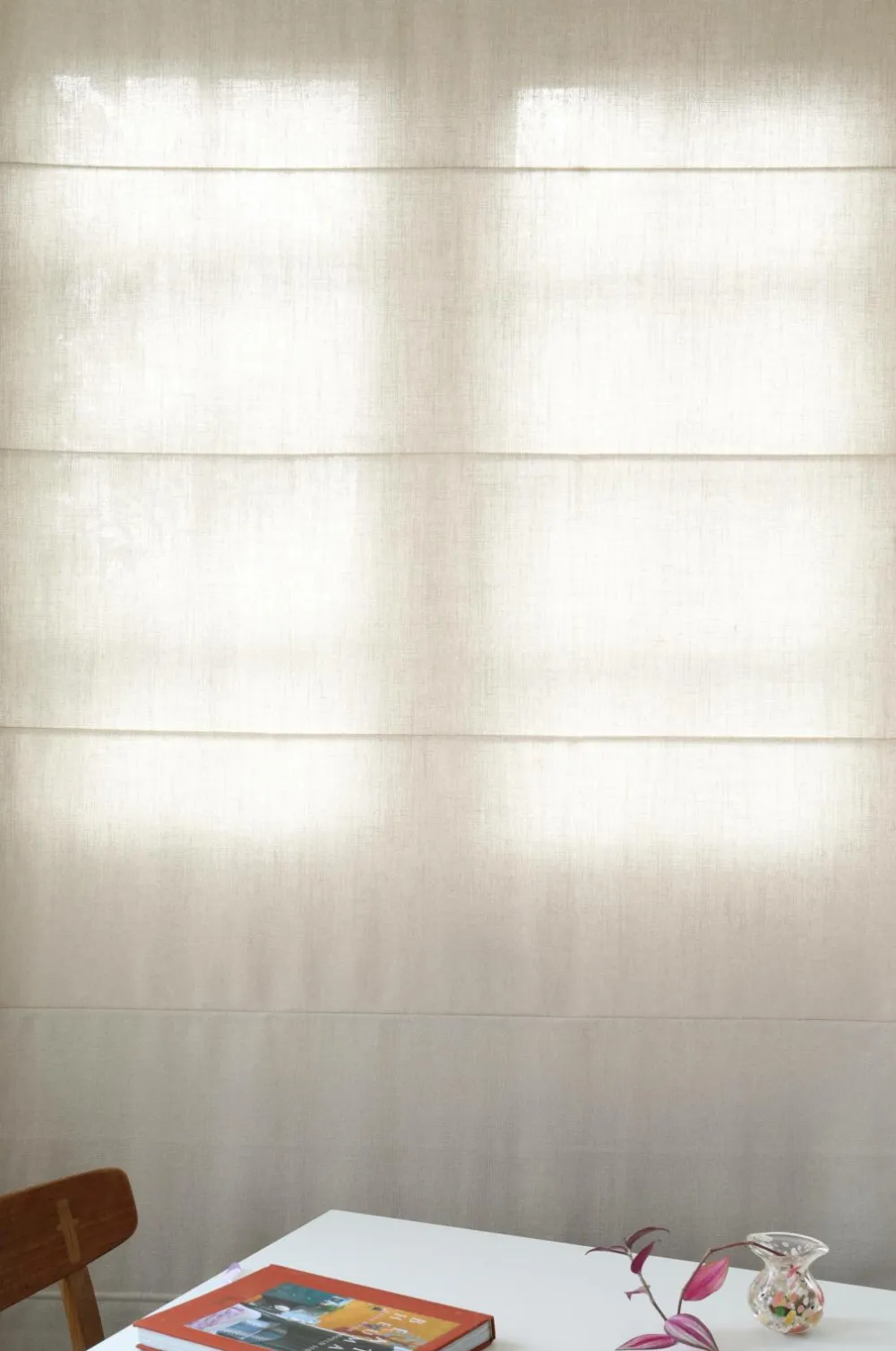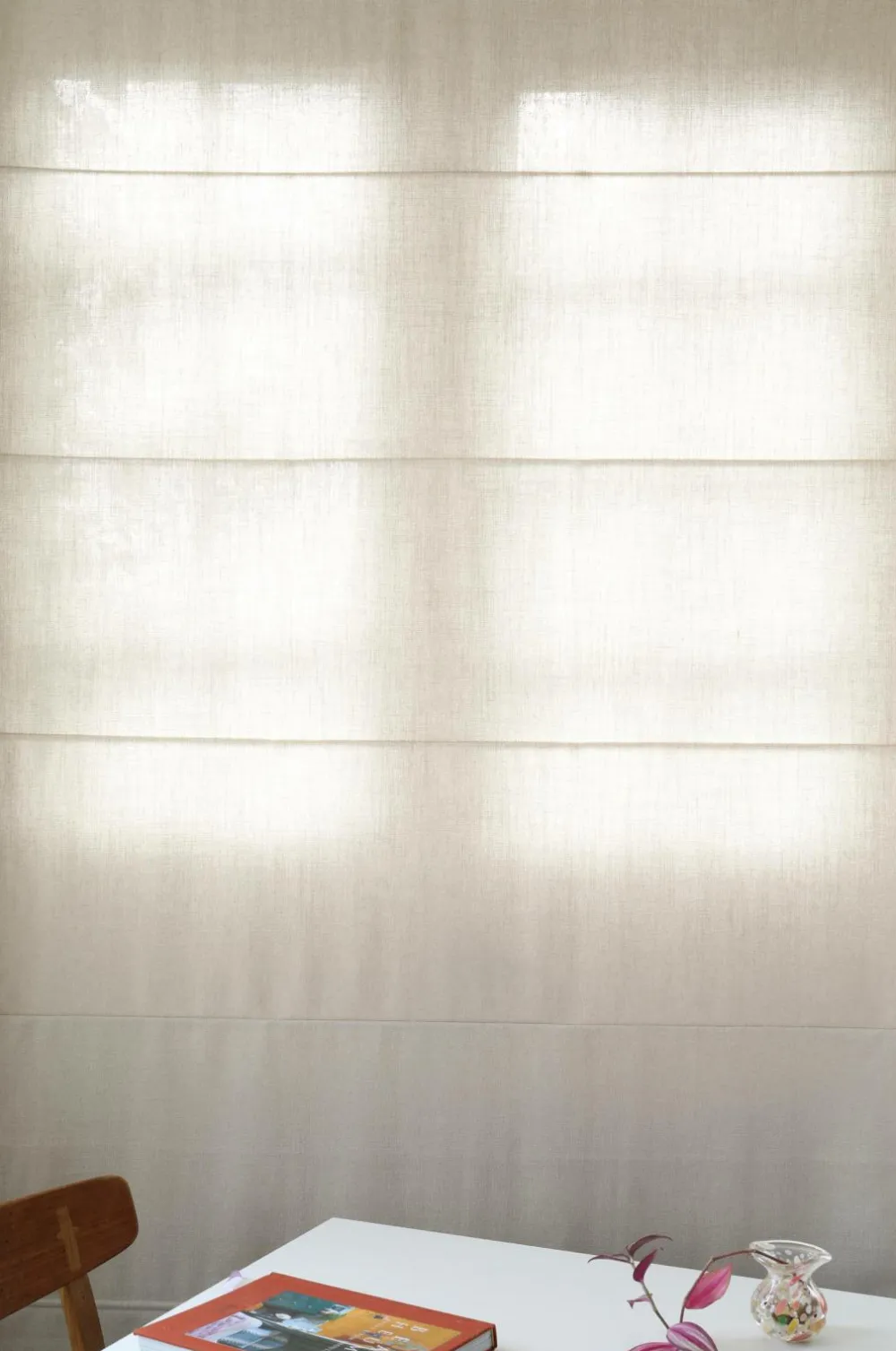 Mimous liftgardin er 220 cm langt hvilket gør at det også passer i lidt højere vindue samt de fleste glasdøre. Stoffet Studio har et tungt fald og smuk struktur som lyset skinner igennem men som beskytter helt mod indsyn. Liftgardinet er skræddersyet med smalle sidefolder og med lægter, der giver stramme læg ved foldning. Afstanden mellem lægterne gør, at liftgardinet foldes smukt sammen, uanset hvilken højde du vælger at have det på. Det er lige så fint i fuld optrukket position, som når det hænger helt ned eller er højdejusteret, hvor sømmene til lægterne er placeret. Det kan naturligvvis justeres frit. Stoffet er monteret med velcrobånd på en stabil aluminiumsprofil, der kan monteres både i loft og på væg. Linerne fra lægterne samles i en linedeler som er designet til at blive separeret, hvis dit barn eller et husdyr bliver viklet ind i linerne. Længst nede på snøren af vævet svensk hør sidder en klassisk porcelænsknop fremstillet i Bromölla. Beslag og snorholder medfølger. Set forfra sidder snoretrækket i højre side. Det er vigtigt at snøre linen ordentligt rundt om knoppen hver gang højden justeres, så der ikke hænger lange snore ned, som små børn eller husdyr kan blive viklet ind i. Stoffet opfylder alle de sikkerhedskrav angående brand, som stilles til gardiner i det offentlige rum. Og det er OEKO-TEX® Standard 100 certificeret, det vil sige at produktet er testet for at sikre, at det ikke indeholder sundhedsskadelige stoffer.