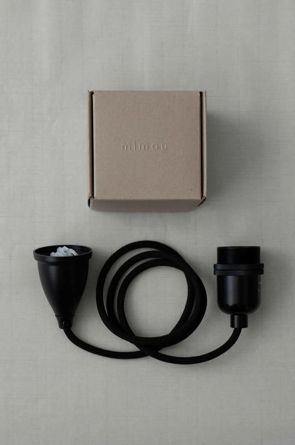 Svenskfremstillet ophæng, der passer til Mimous håndlavede papirlamper. Loftophæng med 1,2 meter stofledning, E27 fatning i metal og baldakin af silikone. Lampestik er vedlagt separat for egen installation.
