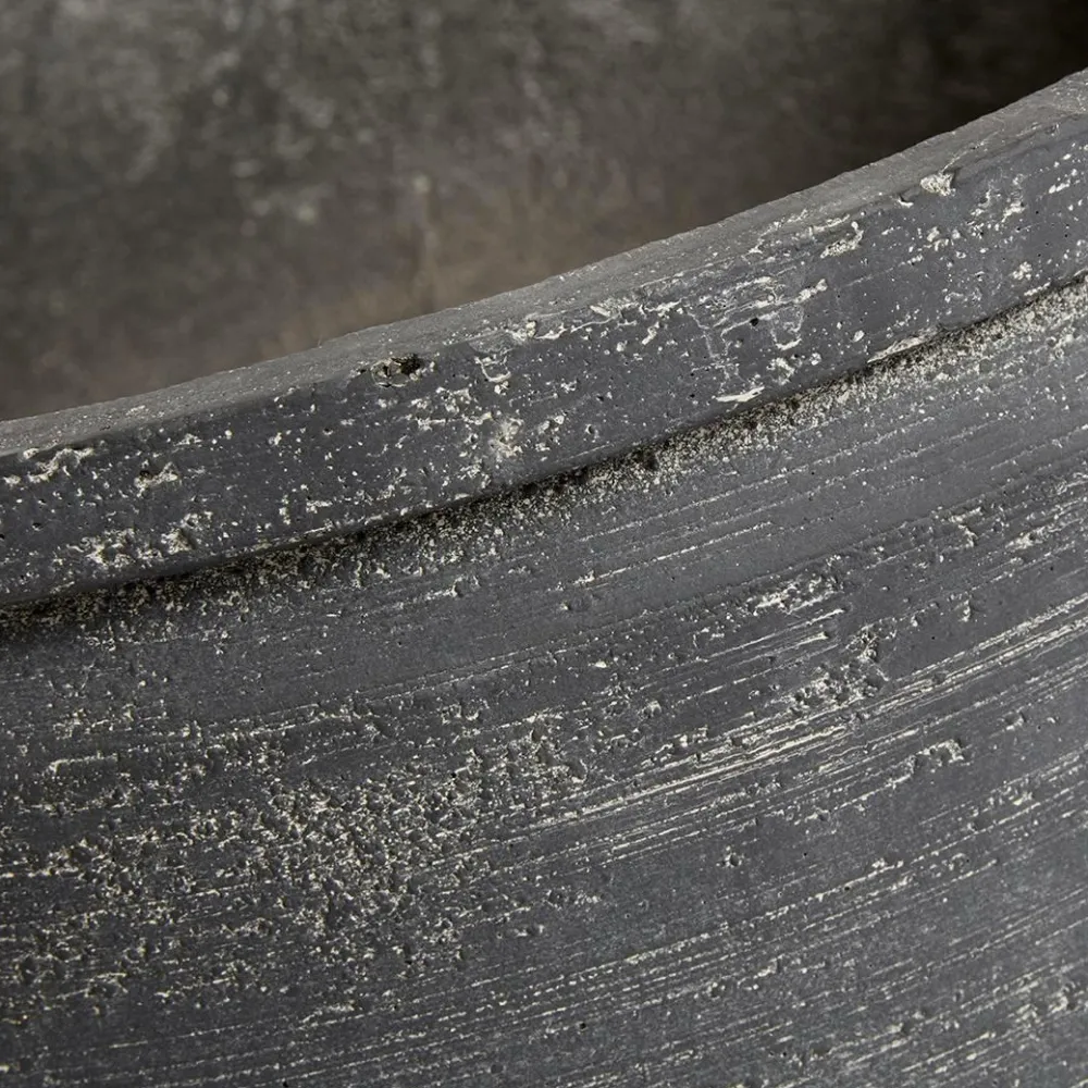 Krukken Kanji i cement er tilpasset både indendørs- og udendørsmiljøer. Størrelsen på krukken gør den egnet til mindre træer eller andre mellemstore planter. Krukken er frostsikker ned til -15 grader.