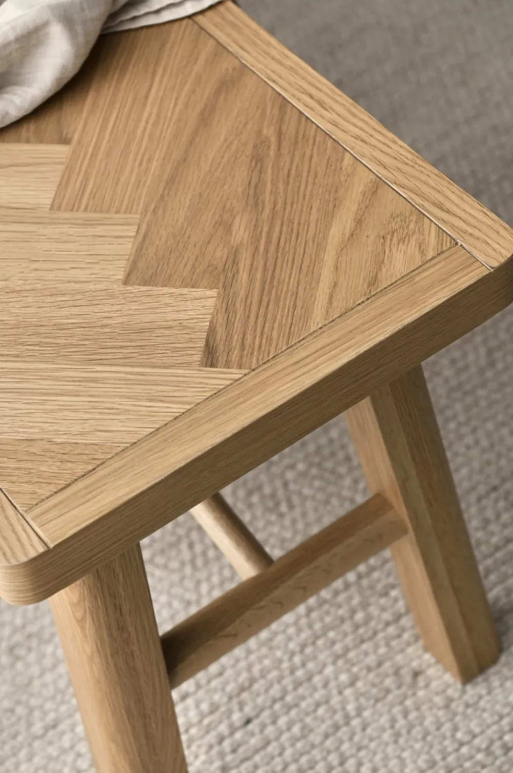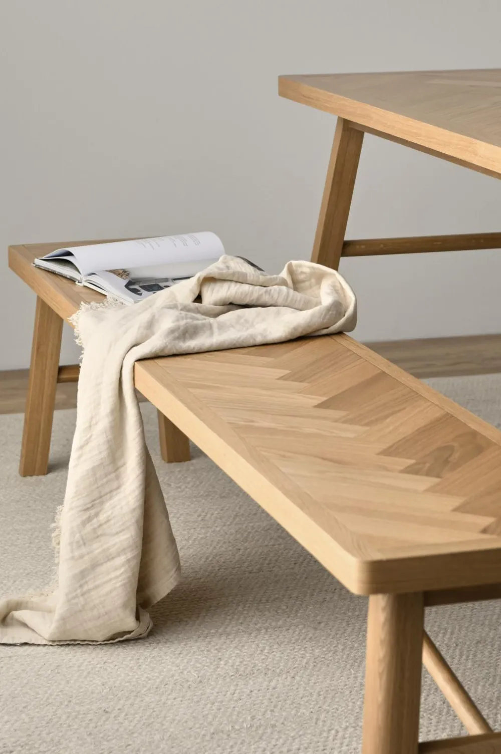 Når du kombinerer eg og sildebensmønster, sker der magi – og denne bænk er inget undtagelse. Brug bænken i køkkenet, entreen eller soveværelset for et nordisk, sofistikeret udtryk. Den er flot, elegant og du vil sikkert få mange komplimenter.