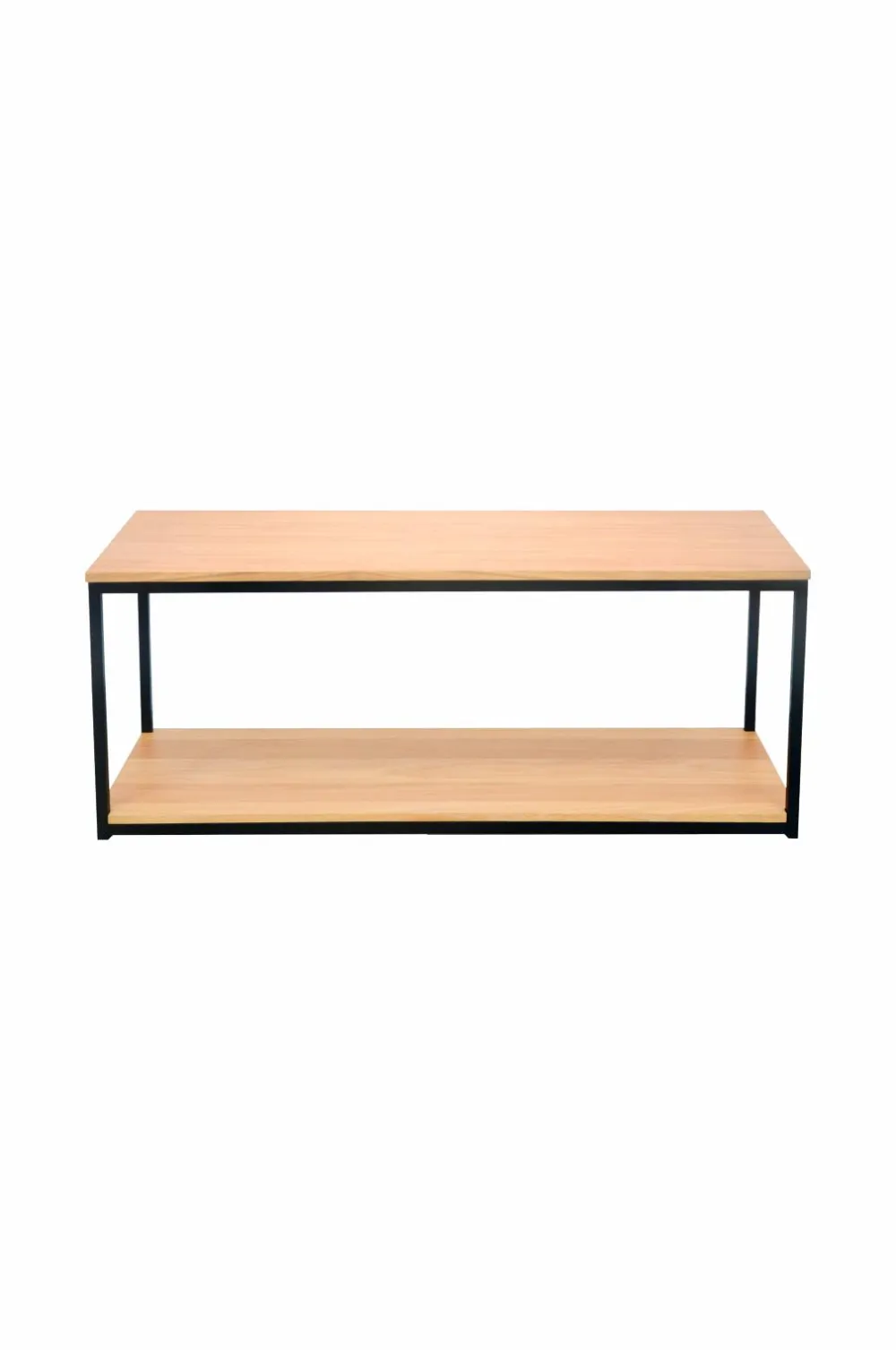 Tv-bænk i lakeret, hvidpigmenteret egefinér med stel i lakeret metal.