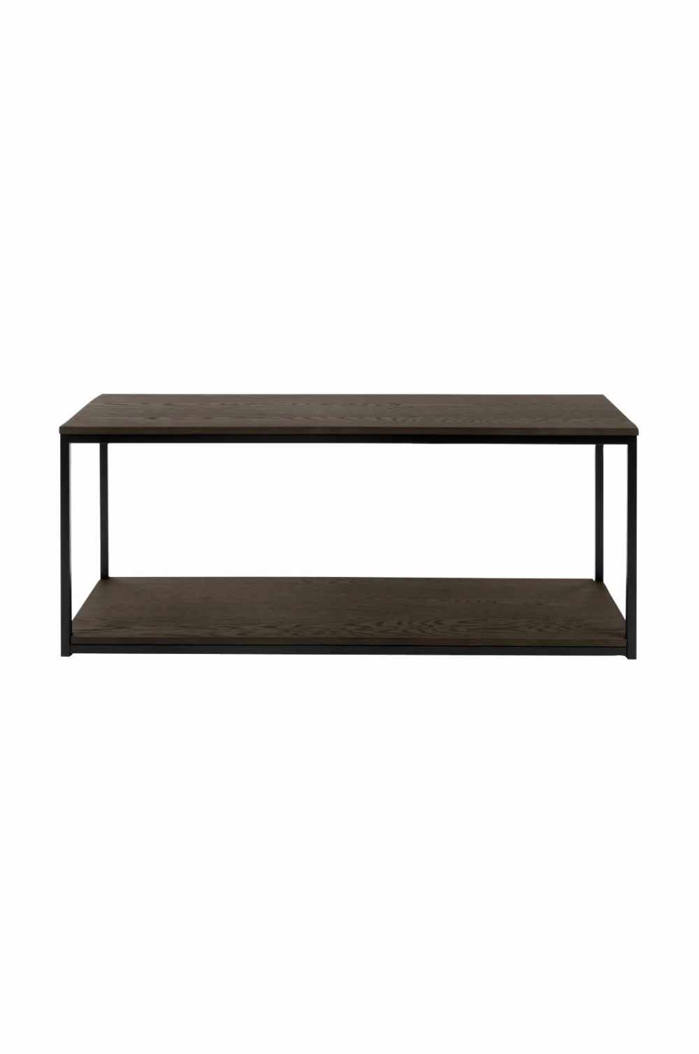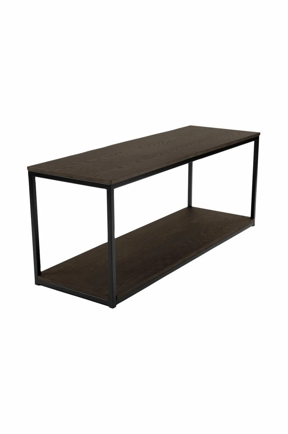 Tv-bænk i lakeret, hvidpigmenteret egefinér med stel i lakeret metal.
