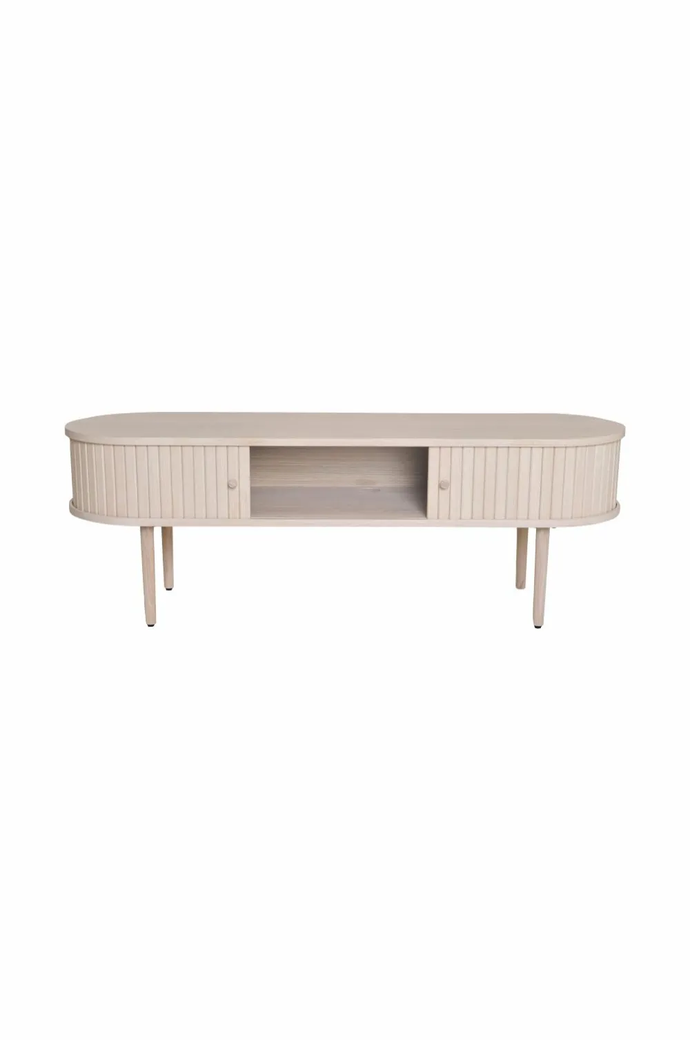 Ribberne giver en smuk struktur og skaber et interessant visuelt element. Bænken er fremstillet af lakeret eg.