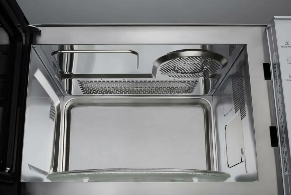 Det smarte interiør reducerer dybden og betyder, at den fylder omkring 20% mindre i forhold til konventionelle mikrobølgeovne, samtidig med at den indvendige plads udnyttes bedst muligt. Det betyder mere plads på køkkenbordet.