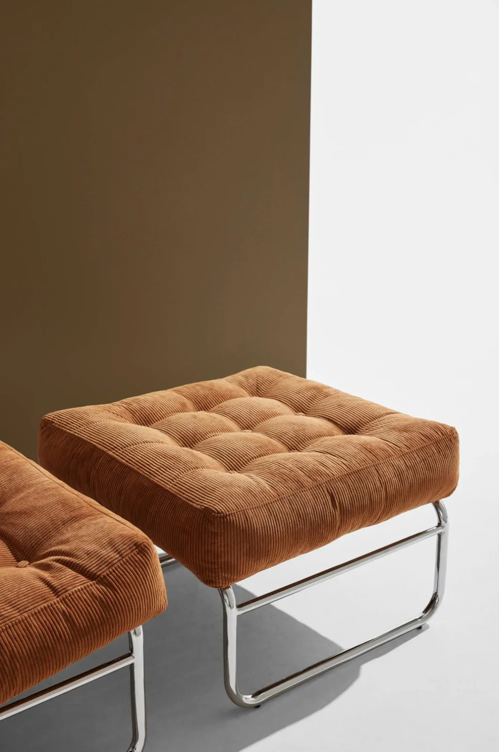 Luca-fodskamlen fra Pastill leder tankerne hen på 70’erne. Det forkromede jernstel og -ben kombineret med fløjlspolstringen giver dig den nostalgiske følelse – et elegant valg til dit hjem.
