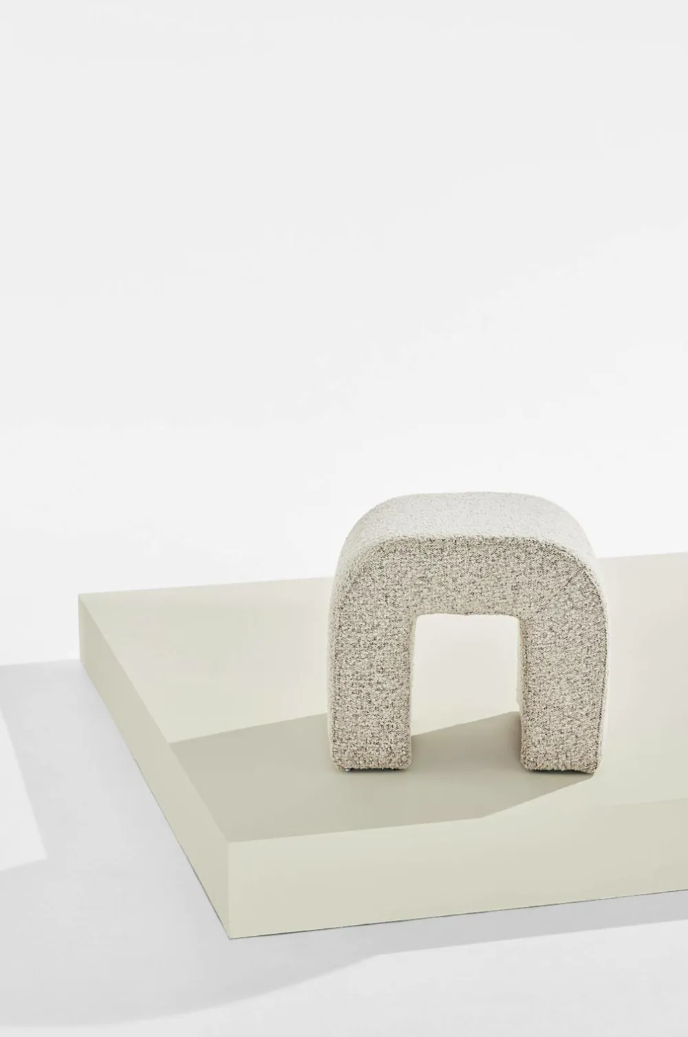 Puf i lækker model med spændende form, beklædt med blød bouclé. Odette er et møbel med mange anvendelsesmuligheder, du får en skøn puf i dagligstuen, både som fodskammel og som ekstra siddeplads. Odette er indbydende, når puffen bruges som skammel og placeres i entreen. Det er både flot og behageligt med en siddeplads i entreen. Den tiltalende u-form føles innovativ og ny. Garnet som stoffet er vævet af har små løkker og knuder som skaber et blødt stof med let krøllet overflade. Stoffet er meget slidstærkt med Martindale på 79000. Rammen er af FSC-certificeret fyrretræ og plywood som er beklædt med behagelig og fast polstring af koldskum. Betrækket er ikke aftageligt.