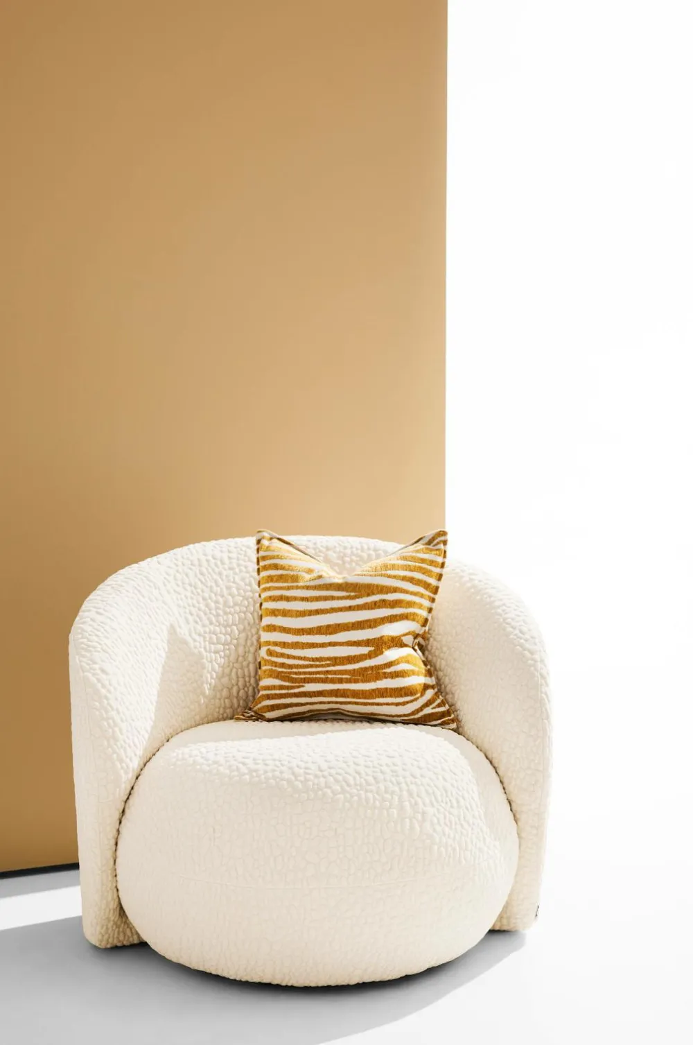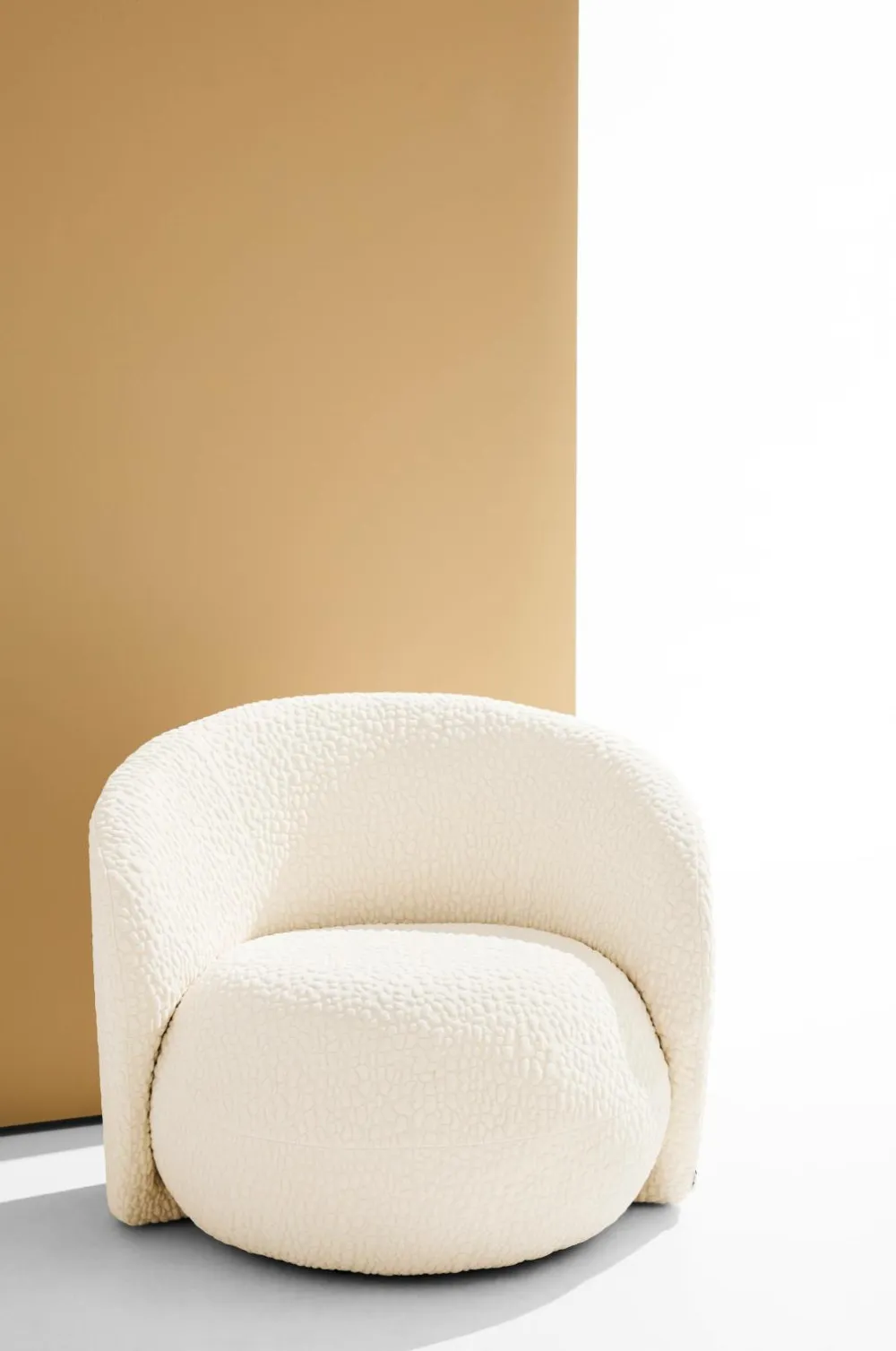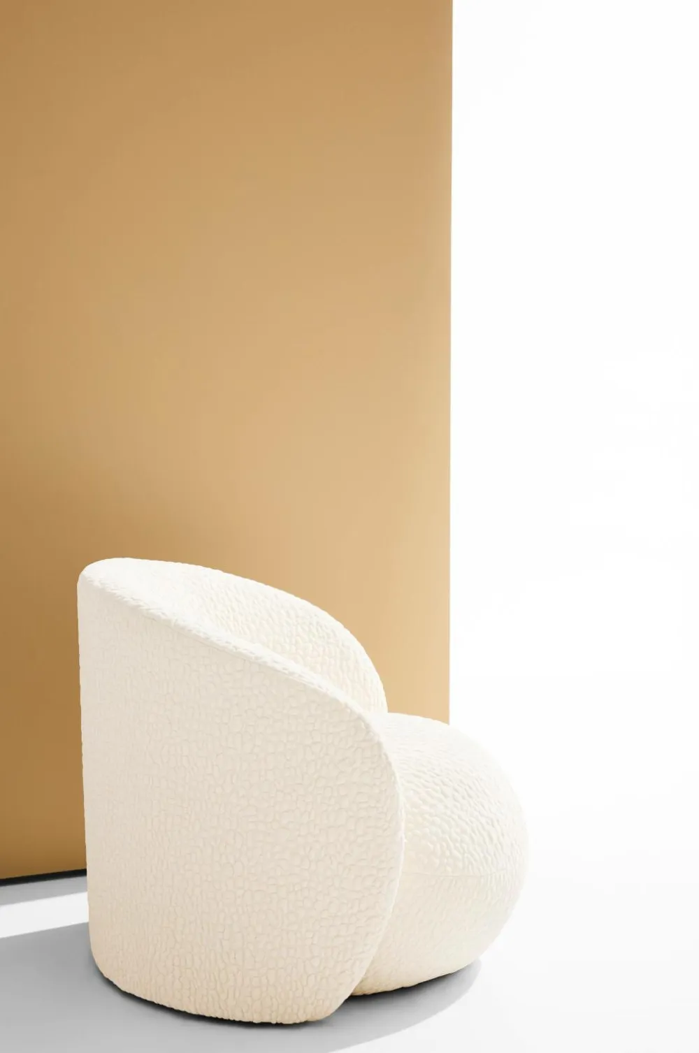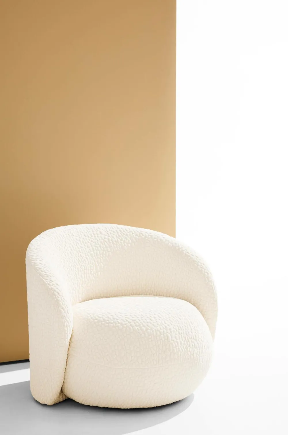 Lænestol med en rund, indbydende form. Lænestolen ser godt ud i en gruppe omkring et lavt bord, men er også dejlig alene, måske i soveværelset eller i en lidt større gang. Lænestolen er komfortabelt konstrueret med et stel og en ryg af FSC-certificeret fyrretræ og krydsfiner kombineret med elastikker, koldskum og polyestervat. Man sidder behageligt på hynden, som også har zigzagfjedre for at gøre den endnu mere komfortabel. Betrækket er godt syet og har en god pasform, ikke aftageligt.