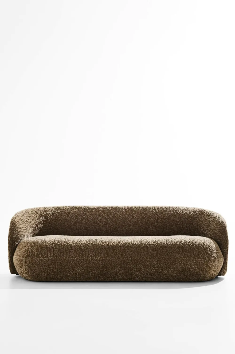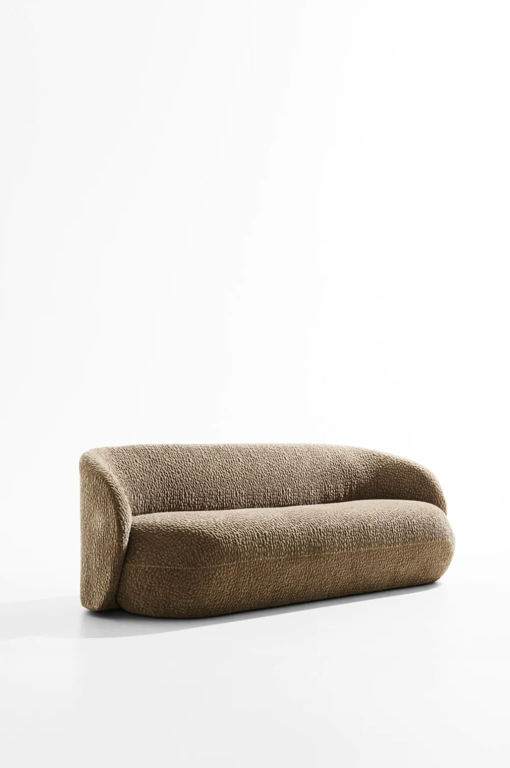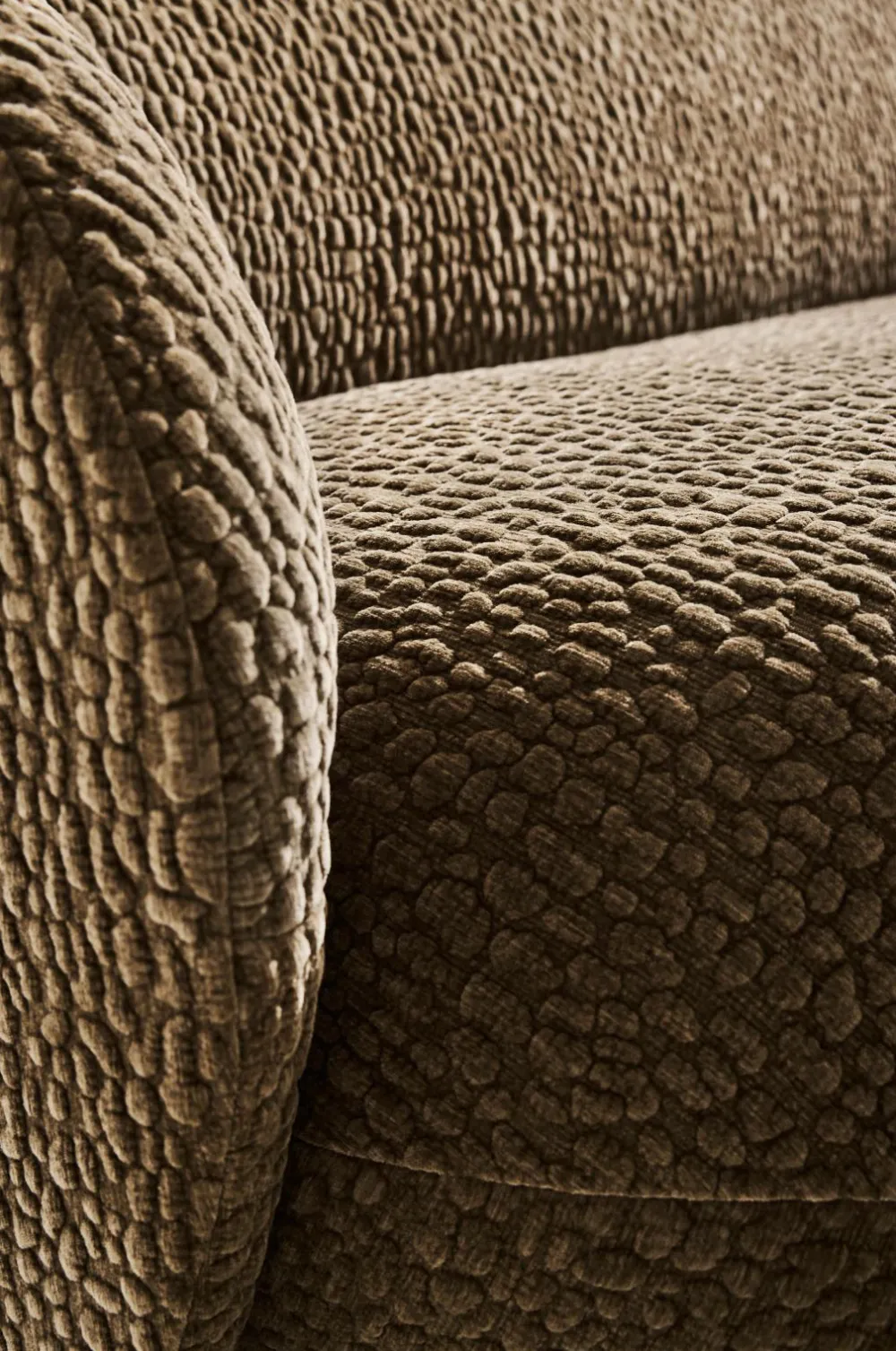 Sofa i lækkert stof med en rund, indbydende form. Sofaen passer perfekt sammen med lænestolene i Bloom-serien og et lavt bord til, så du får en hyggelig siddegruppe i stuen. Der er plads til tre personer i Bloom-sofaen. Sofaen er komfortabelt konstrueret med en ramme og ryg af FSC-certificeret fyrretræ og krydsfiner kombineret med elastikbånd, koldskum og polyestervat. Man sidder behageligt på hynden, som også har zigzag-fjedre for at gøre den endnu mere komfortabel. Betrækket er godt syet og har en god pasform, ikke aftageligt.
