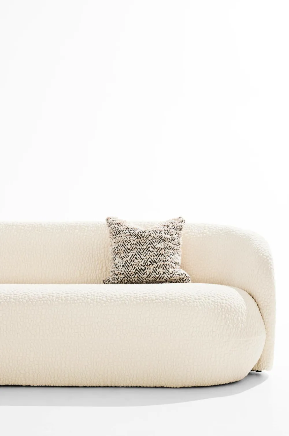Sofa i lækkert stof med en rund, indbydende form. Sofaen passer perfekt sammen med lænestolene i Bloom-serien og et lavt bord til, så du får en hyggelig siddegruppe i stuen. Der er plads til tre personer i Bloom-sofaen. Sofaen er komfortabelt konstrueret med en ramme og ryg af FSC-certificeret fyrretræ og krydsfiner kombineret med elastikbånd, koldskum og polyestervat. Man sidder behageligt på hynden, som også har zigzag-fjedre for at gøre den endnu mere komfortabel. Betrækket er godt syet og har en god pasform, ikke aftageligt.