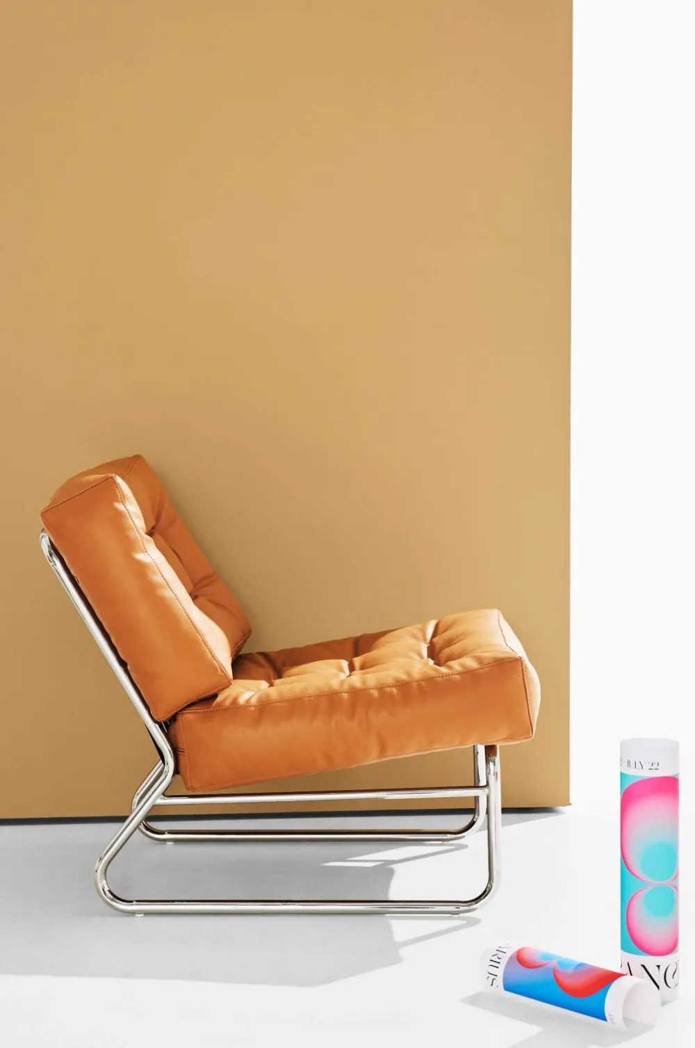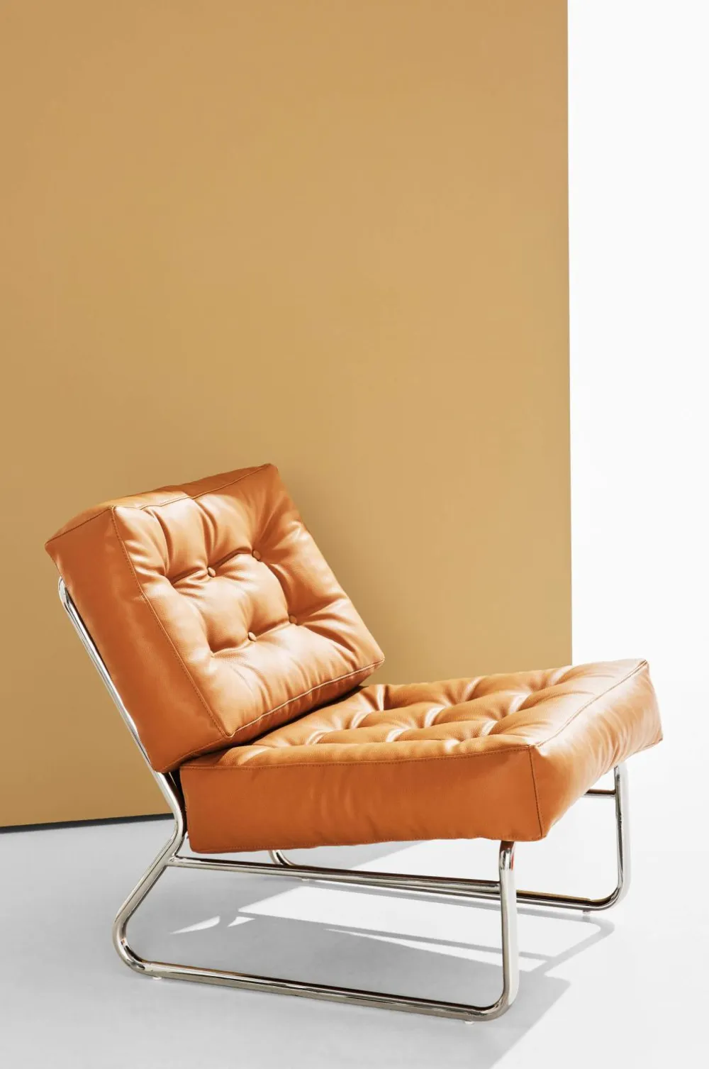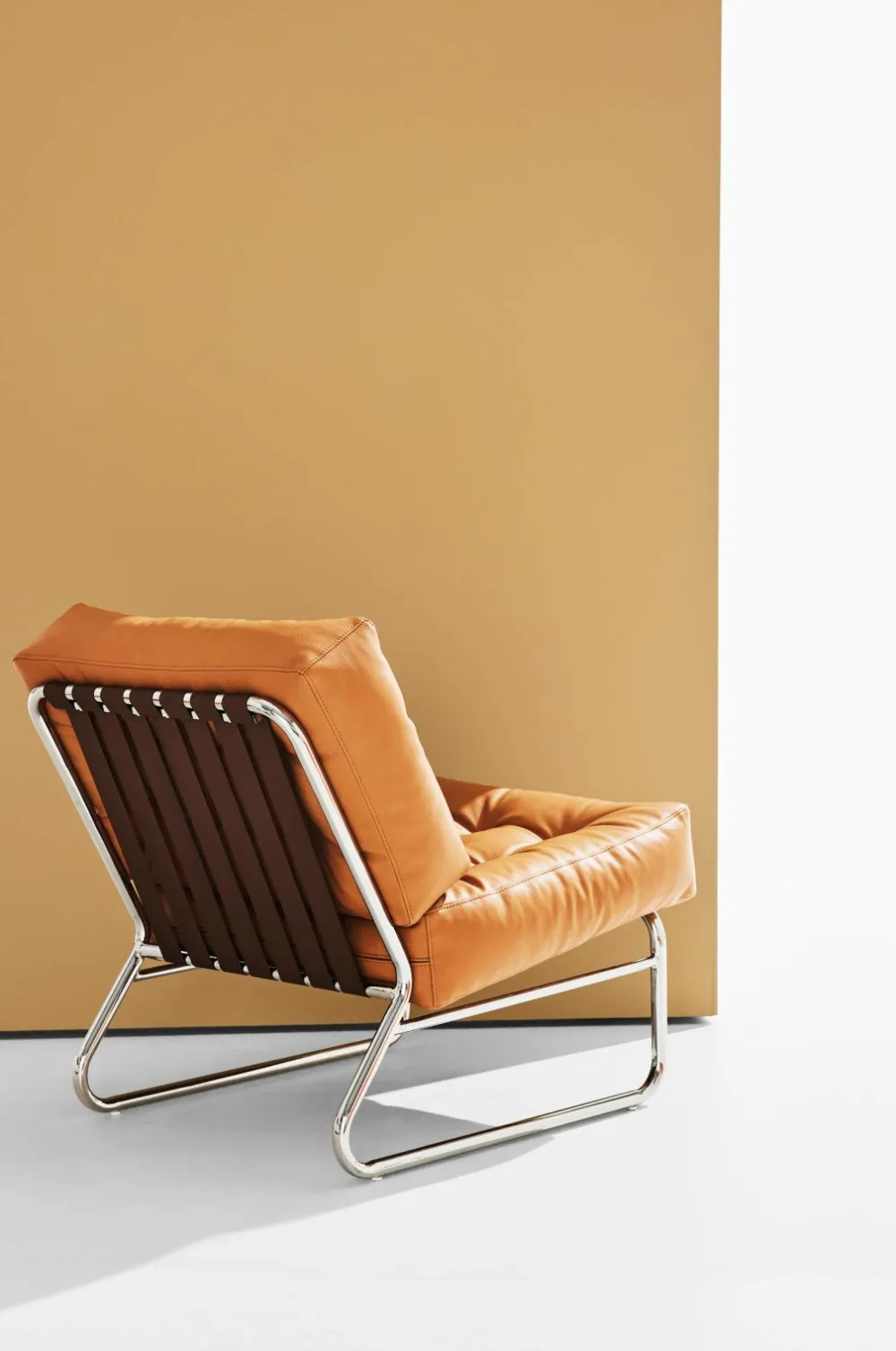 Luca lounge chair er en lavere lænestol med et metalstel i kromfinish, dejlige sædehynder og nylonstropper på sæde og ryg.