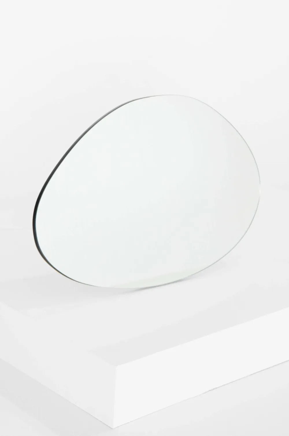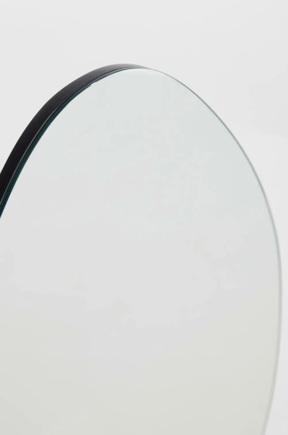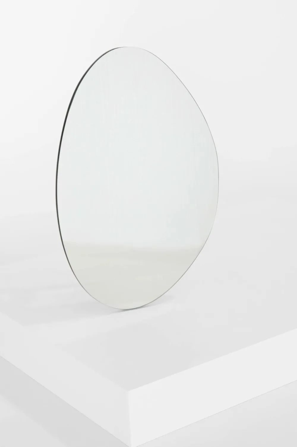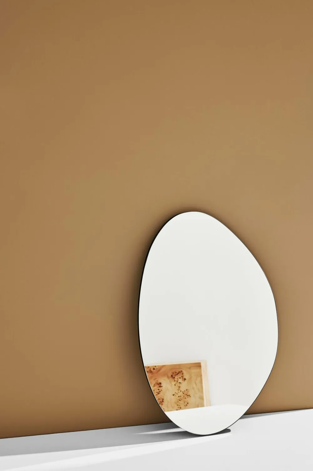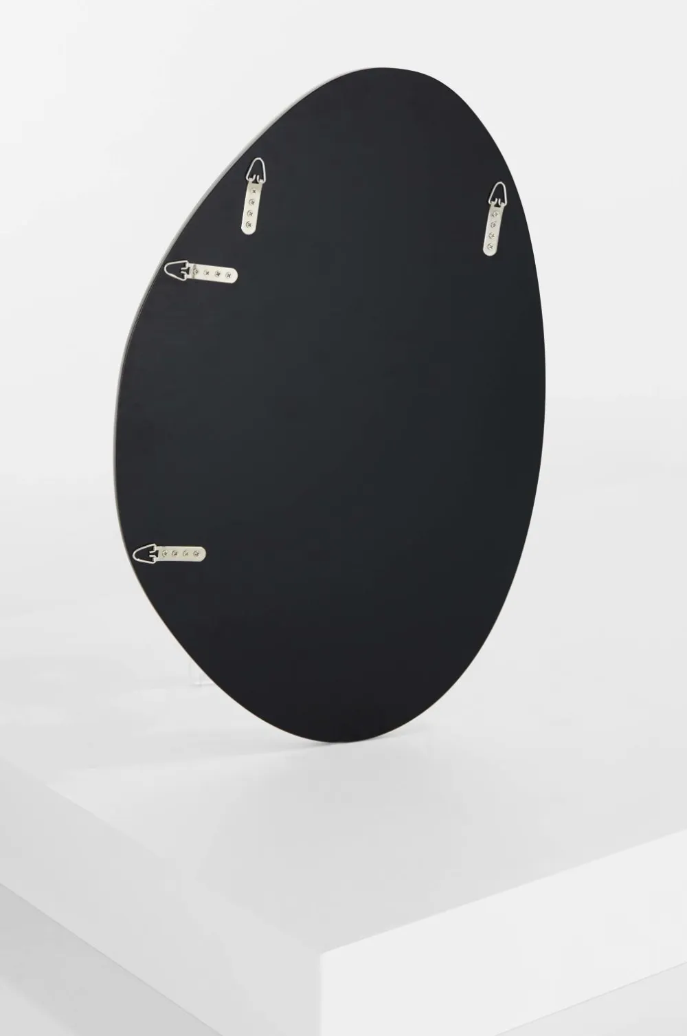 Asymmetrisk ovalt vægspejl, en spændende form som skaber effekt og bliver blikfang. Belle er ikke bare et spejl, det er også en flot vægdekoration. Spejlets ophængning er fleksibel og det kan hænges både vandret og lodret. Bagsiden er af FSC-mærket, sortmalet MDF og en diskret sort kant kan ses fra siden. Spejlet har dobbelt ophængning, fire skjulte metaløskner på bagsiden, to stropper langs to sider.