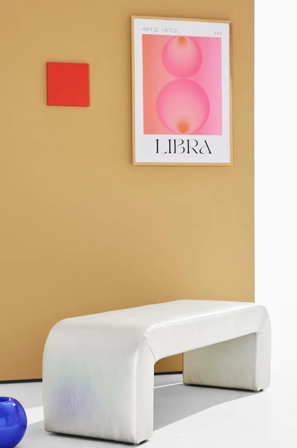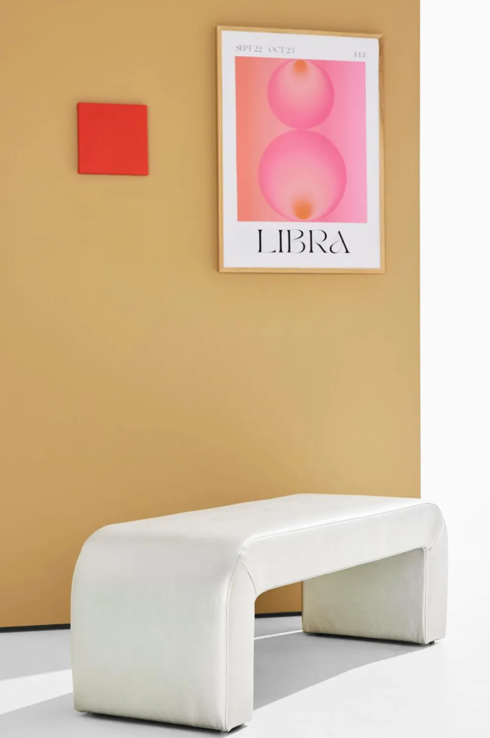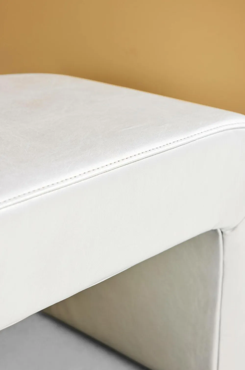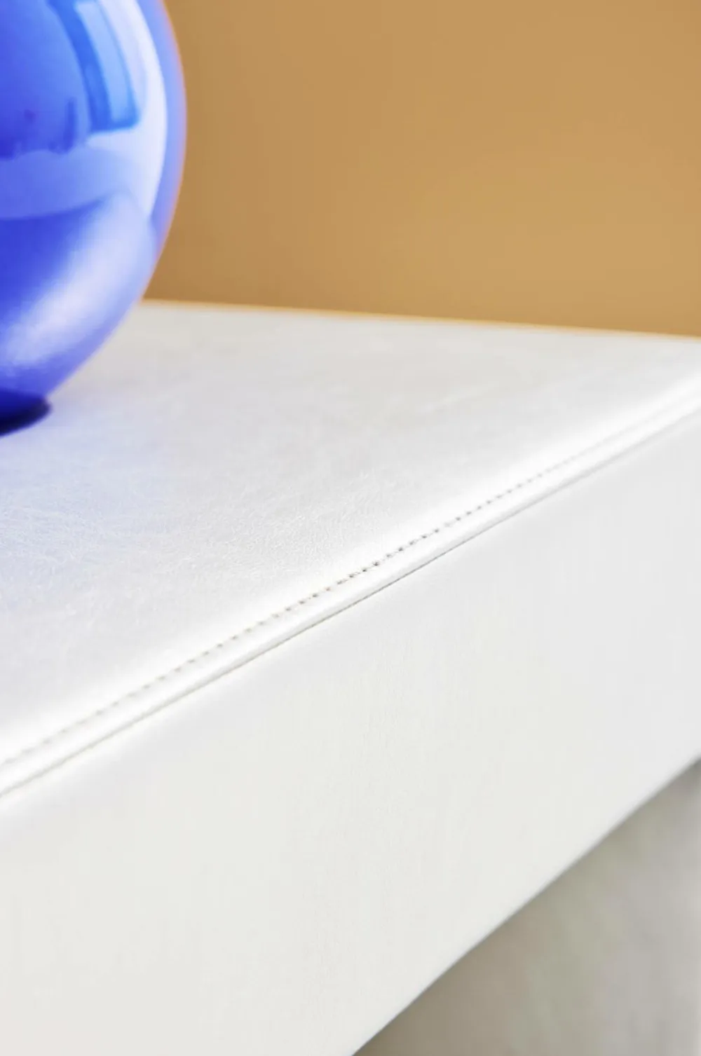 Bænk i en lækker model med en spændende form og med sølvfarvet PU-polstring. Giver en følelse af space age, og den tiltalende u-form føles innovativ og ny.