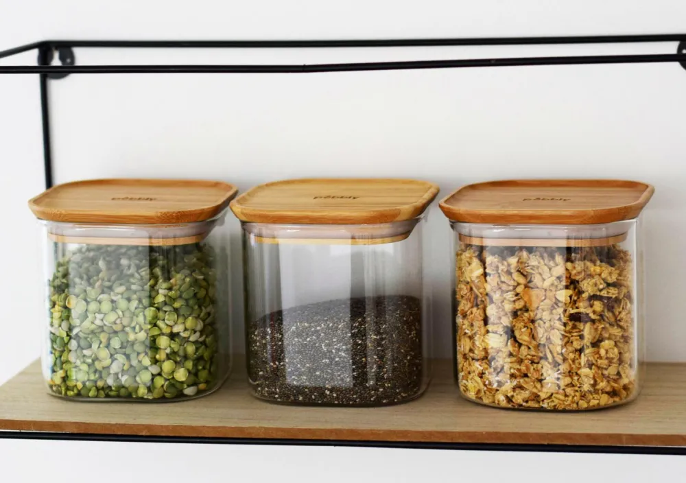 Denne stabelbare glasbeholder med bambuslåg i 3-pak er den perfekte løsning til at organisere din krydderihylde og bordplade og samtidig holde dine fødevarer friske. Denne beholder med bambuslåg er fremstillet af borosilikatglas af høj kvalitet og er holdbar, stilfuld og alsidig. Bambusstykkerne tåler ikke opvaskemaskine!
