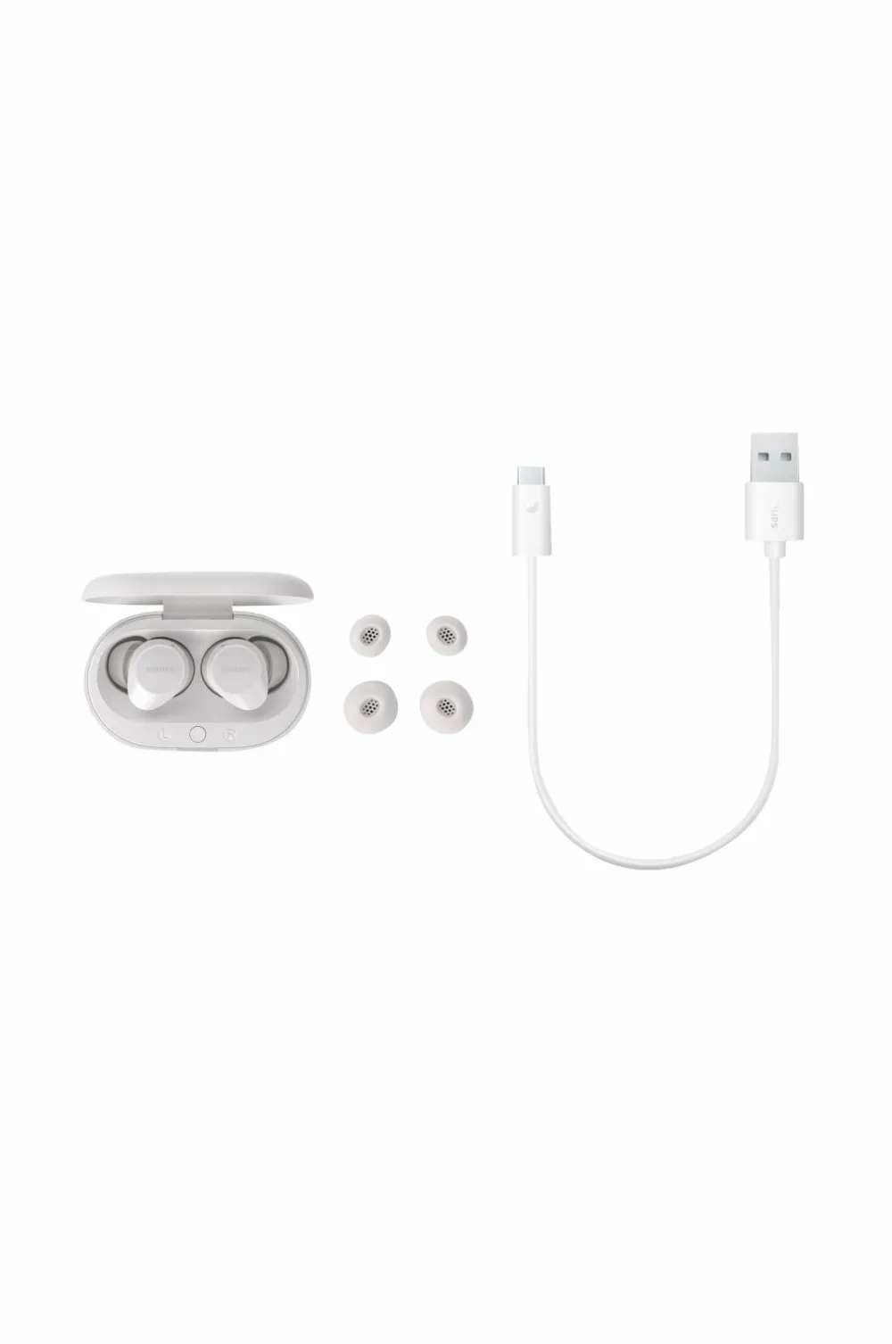 Oplev fantastisk lyd, dynamisk bas og et opladningsetui i lommeformat med disse kompakte og komfortable true wireless-ørepropper – perfekte til brug hele dagen.